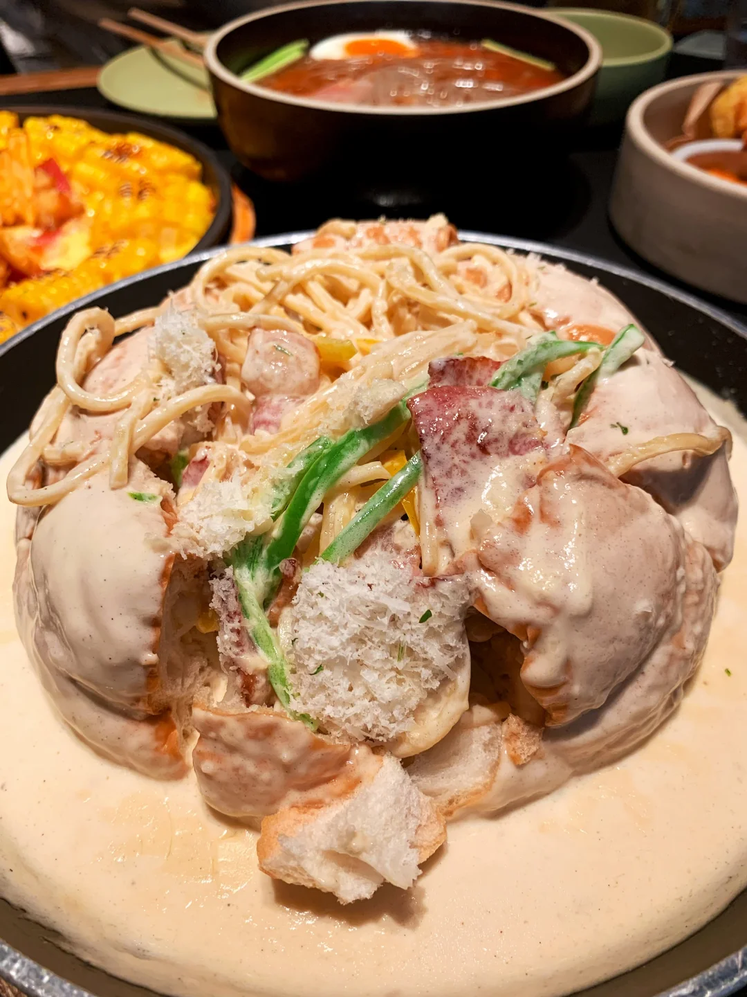 今天和朋友来吃约了很久的一家餐厅🍴 暖光韩系氛围感,装修清新又温馨 店里干净安静,服务超贴心,社恐和约会党都能轻松躺平,拍照打卡一绝! 必点推荐(N刷): 🔥 玉米大虾披萨:拉丝芝士+鲜大虾+甜玉米,巨香! 🍝 面包培根奶油意面:面包裹奶油,酱汁浓郁,劲道过瘾。 🍢 甜辣大虾炒年糕:年糕Q弹,大虾饱满,甜辣上头。 🍶 蜂巢米酒:清甜微醺,解辣绝配。 🧊 蓝莓雪冰:绵密清爽,饭后收尾超治愈! 多款招牌齐了,环境服务还这么在线,直接冲!🥳