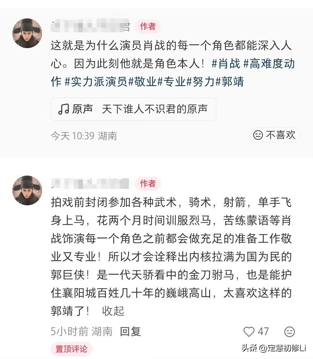最近,肖战版《射雕英雄传侠之大者》再度成为大家热议的话题。只因有人将其拉出来作对比。肖战身上那股粗粝的草原气质,才是真正的郭靖大侠该有的模样,这般气势,才可称为一人可抵千军万马的英雄。 不可否认,肖战所塑造的郭靖,是最贴合金庸原著的。即便皮肤粗黑,也难掩他高大英俊的贵气,这与金刀驸马的气质和外形高度契合。 肖战如同郭靖一般,亲自驯服烈马,单手上马飞驰,双手脱缰射箭🏹。武打训练时,一招一式尽显大侠风范。他苦练蒙语,最终能熟练运用蒙语台词。为贴合角色外形气质,他把自己的皮肤弄得黝黑粗糙。 这才是真正的好演员,不为凸显自身独特与俊美,只为服务角色,融入角色、融入众生,让大家忘却演员肖战,只记住郭靖。肖战做到了这一点,当被无数人拉出来对比时,就更能看出他作为演员的优秀。 他低调内敛,为角色所学的技能,绝不会拿到其他场合炫耀,更不会以此为噱头立人设。这正是肖战令人钦佩和仰慕之处,也是一个演员应有的专业度。