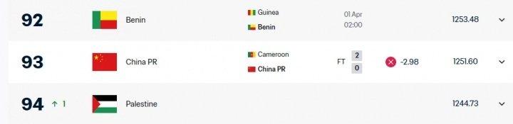 热身赛含金量不高,国足0-2喀麦隆,比分能接受,原以为会是一场惨案,喀麦隆会来事。 国足首发身价670万欧,喀麦隆4100万欧是国足6倍多。国足平均年龄25.2岁,喀麦隆比国足年轻3岁。 赛后,FIFA官网更新实时排名,国足扣掉2.98分,掉回世界第93位。上一场国足2-0击败库拉索后,国足赚得5.51积分,FIFA实时排名+1,升至第92位。