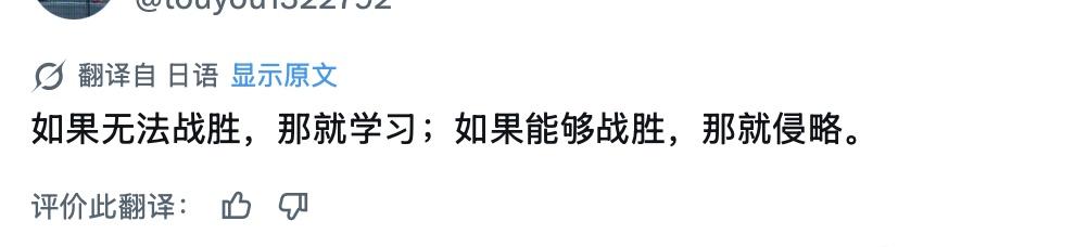 日本对中国一直存在“倭寇心态”。有一位日本网民总结得挺好:打不过就学习,打得过就