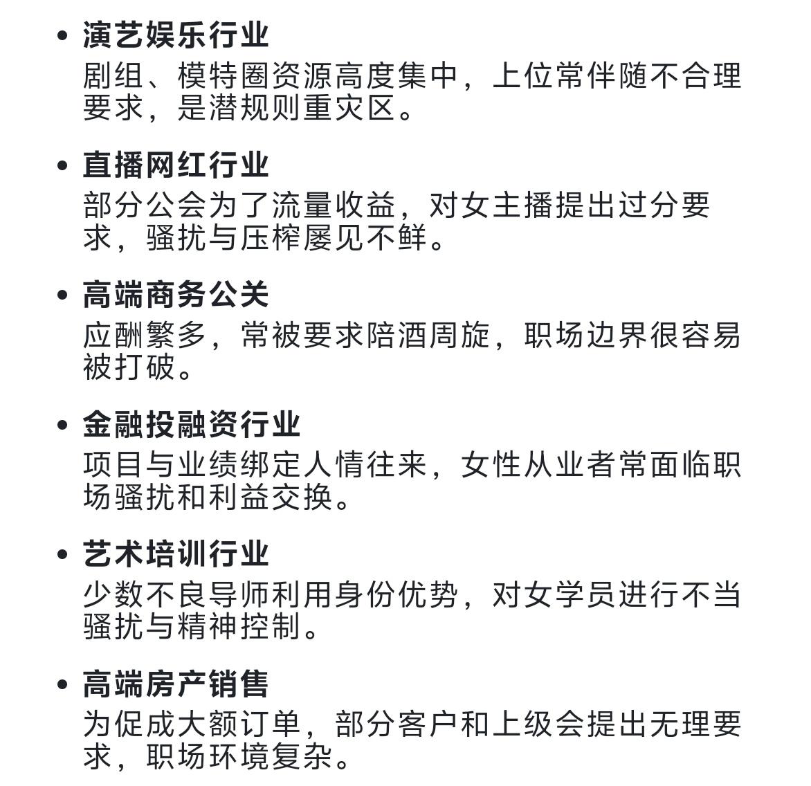 女生找工作注意!这6个行业水很深,容易遇到“潜规则” 有些行业看着光鲜亮丽,其实背后水很深,为了拿资源、冲业绩,不少女生会被提各种无理要求,甚至遭遇职场骚扰。找工作的时候一定要多留个心眼。 潜规则 女性就业经验 不管做什么工作,自己的底线绝对不能丢,遇到不合理的要求、不对劲的事,一定要大胆拒绝,保护好自己才是最重要的。