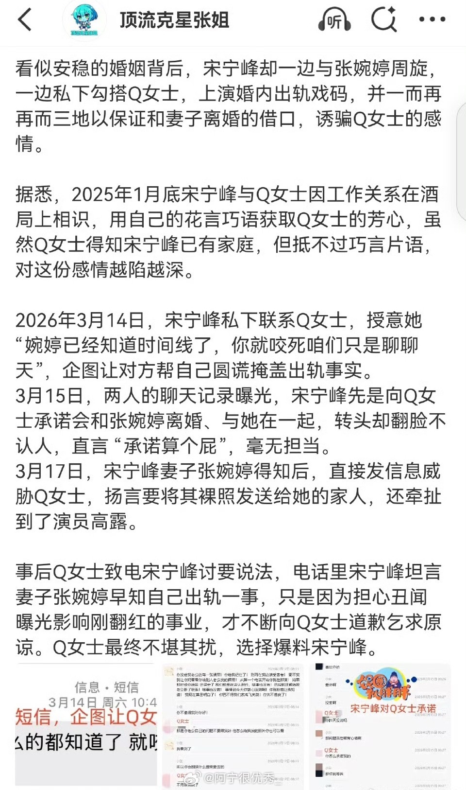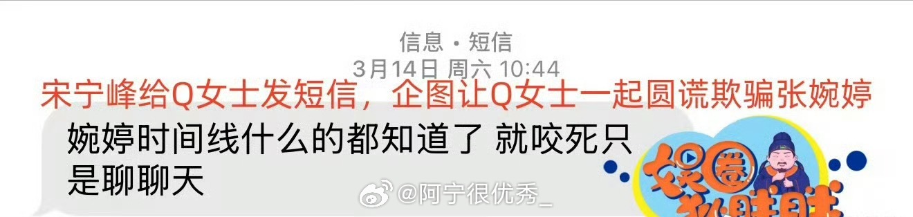 娱乐自媒体曝宋宁峰出轨,还晒出部分聊天记录。不做评判,等当事人回应。 张婉婷老公