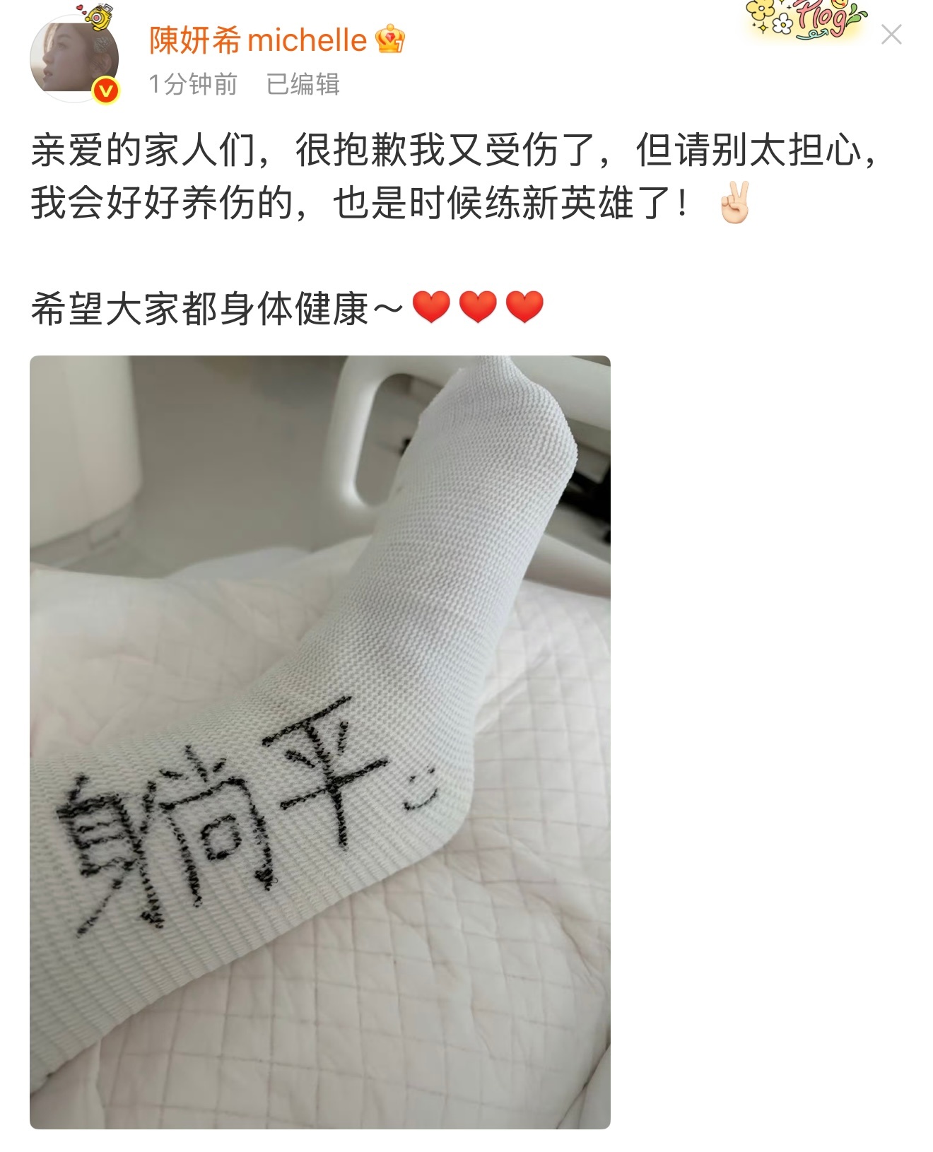陈妍希晒照报平安陈妍希发文报平安