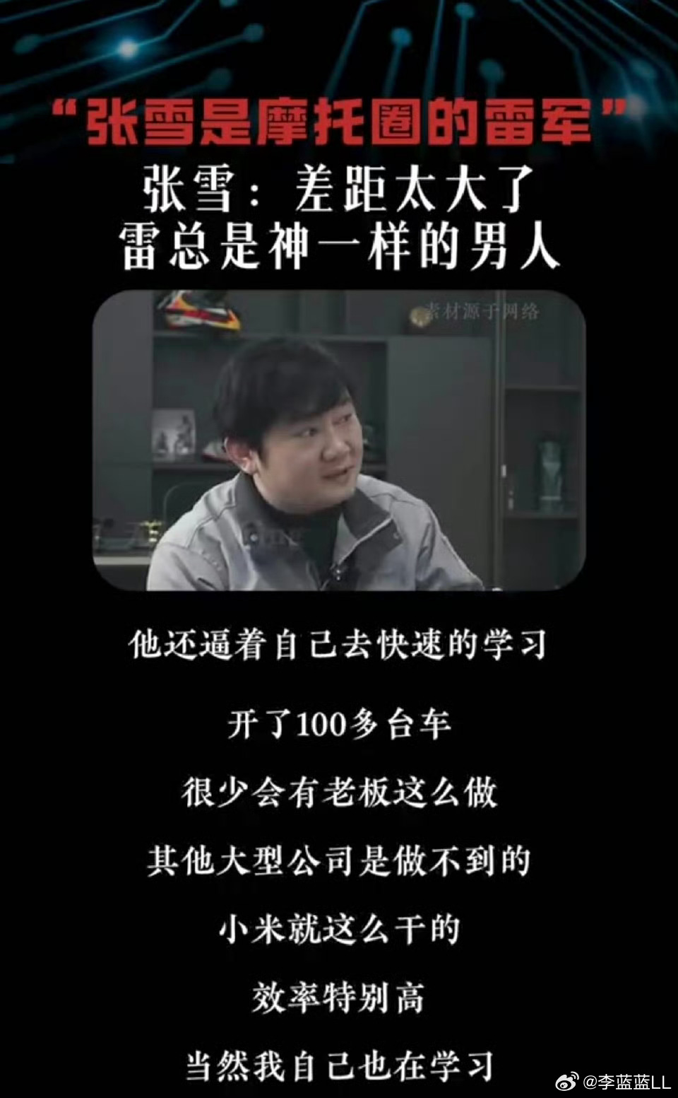 张雪说以前挺喜欢雷军的是不是有些人太敏感了?看了《中国企业家》的采访,我觉得他也没说错啊,只是表达个人喜好和对小米挖孔机盖的看法而已,他还曾说过雷总是神一样的男人呢。