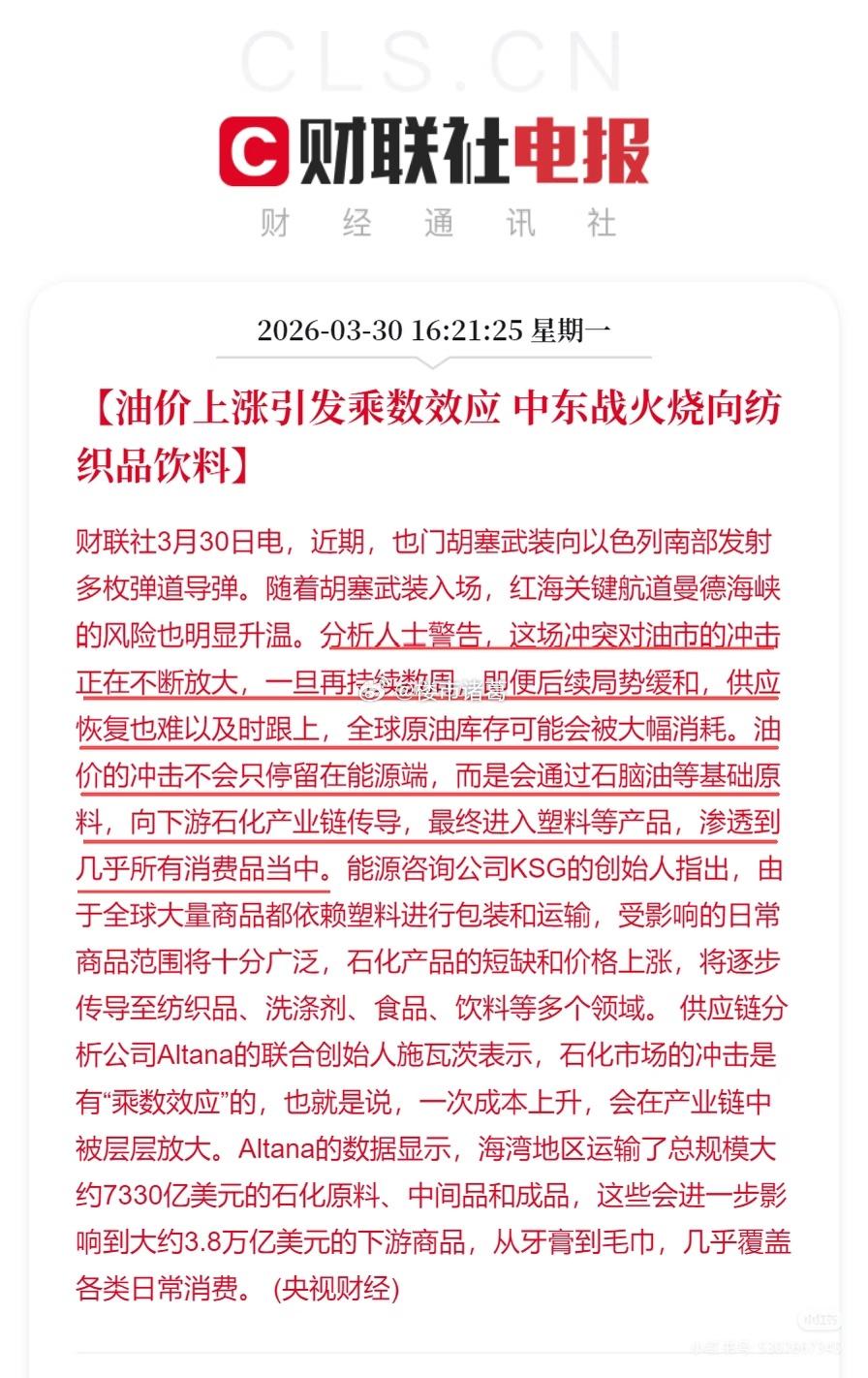 油价上涨冲击扩大,将影响到约3.8万亿美元商品……