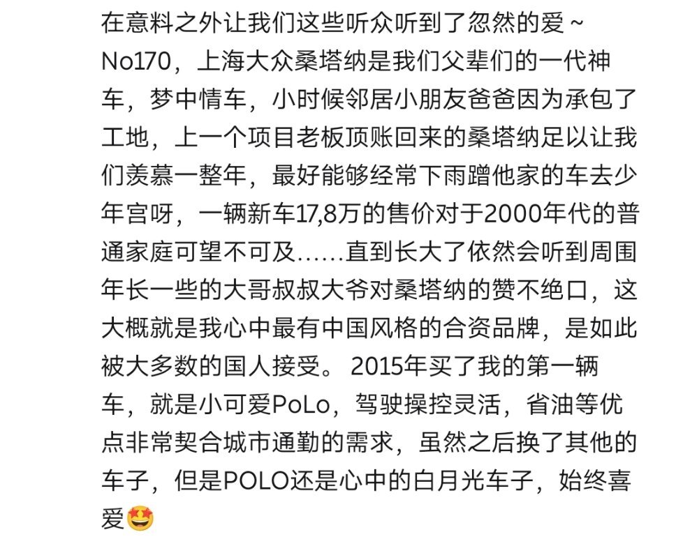 之前觉得中国汽车没有灵魂,其实中国汽车有灵魂,只不过是合资车带给的,就像提到上汽大众,很多80,90后,会感慨那是满满的童年回忆,提到桑塔纳,都会被视为80,90后父辈们的一代神车。
