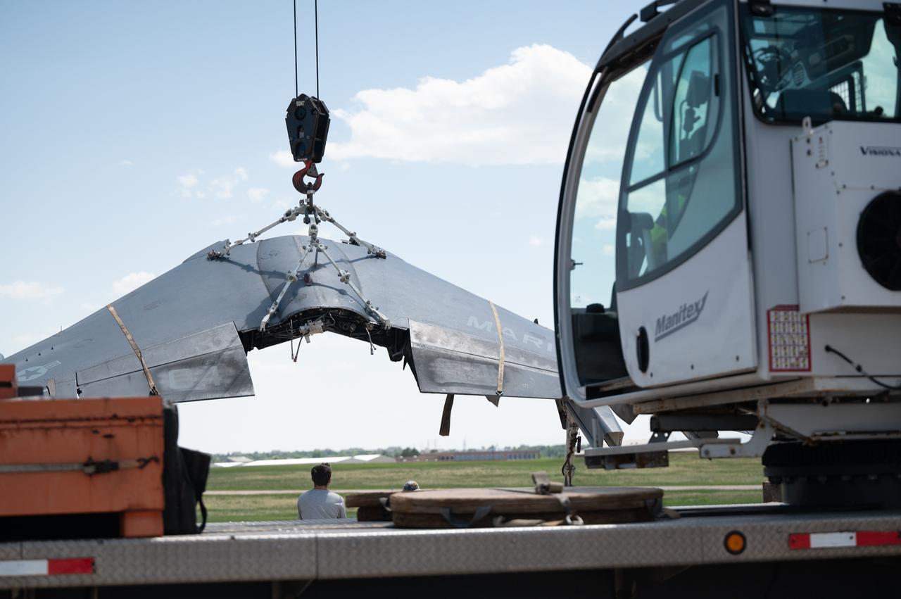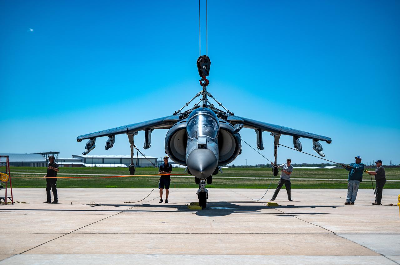 鹞子合体 2025年6月10日,美国海军陆战队技术人员正在把机翼安装到一架AV-8B+“鹞”II上,实现最后的合体。这架退役的“鹞”II被从科罗拉多州巴克利空天军基地运往丹佛市洛基山之翼航空航天博物馆,作为藏品向公众展出。这张照片直观地显示了“鹞”II结构设计的特点:机翼作为一个整体制造和组装,这种方式保证了结构坚固性。但是由于发动机正好位于机翼下方,如果想要维护发动机,必须先拆掉整个机翼,非常费力。这架“鹞”II(16558号)由麦克唐纳-道格拉斯公司于1987年制造,2002年升级到AV-8B+标准,该机层参加过“伊拉克自由”II行动,后又于2007年和2008年分别参加了“伊拉克自由”V和VI行动,再后又部署到阿富汗,在2013年和2017年支援过 “持久自由”行动。