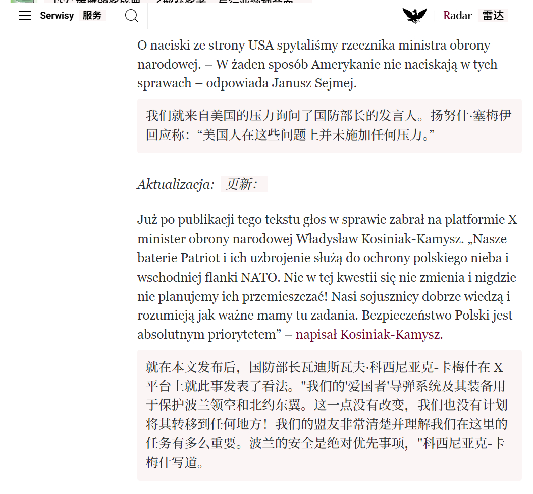 🔻《波兰日报》称:美国要求波兰向中东派遣一套爱国者导弹系统,但华沙方面予以拒绝。🔻波兰国防部长科西尼亚克-卡梅什表示:“我们的爱国者导弹系统及其装备用于保护波兰领空和北约东翼。这一点不会改变,我们也没有计划将其部署到任何其他地方!我们的盟友非常清楚并理解我们在此承担的重要任务,波兰的安全绝对优先。”🔻波兰军队拥有两套爱国者系统,其中包括 16 个发射器。它们在 2025 年底达到了全面作战准备状态。波兰在 2019 年签订的合同中订购了大约 200 枚 PAC-3 MSS导弹。其中大部分已经运抵波兰。伊朗最大岛屿遭美以袭击美军使用钻地弹袭击伊大型弹药库海外新鲜事中东现场直击