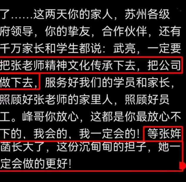 张雪峰去世头七这天,公司总经理武亮发了一篇长文悼念,里面不仅说了对公司未来的安排,还亲口透露了对张雪峰11岁女儿张姩菡的规划,更让人心里发酸的是,武亮在回复里说,已经把张雪峰生前常骑的那辆电瓶车仔细擦拭干净,好好保存起来了。 那辆车并不值钱,既没有豪华配置,车身上还带着日常磕碰留下的痕迹,可正是这辆再普通不过的电瓶车,却成了张雪峰走后最戳人的念想。武亮亲手把它擦得干干净净,妥善收好,这个无声的举动,比任何华丽的悼词都更让人鼻酸。 武亮不是外人。他从宁夏基层咨询师干起,被张雪峰一步步提拔上来,五年间从普通员工走到总经理位置,两人第一次见面就在2021年3月24日,谁也没想到,五年后的同一天,42岁的张雪峰因心源性猝死突然离世。 同一天相遇,同一天永别,这巧合像刀子一样,扎得人心里发堵,武亮今年8月就要结婚,本来张雪峰答应去捧场,如今却只能由他一个人扛起所有。 头七这天武亮的长文,写得既务实又沉重。他没有空喊口号,而是直截了当给出了最关键的答案:公司业务照常推进,一点不打折;全体员工的福利、晋升和发展路径全部有保障,不会因为创始人不在就乱了阵脚。 更狠的是,他明确要把张雪峰积累的方法论和教育理念,彻底转化为团队的组织能力,让一个人的光芒变成一群人的底气。这样,哪怕张雪峰走了,这条帮普通家庭看清高考前路的路也不会断。 外界最担心的改名风波,武亮也一次性说清了。改名“峰学未来”是张雪峰生前亲自定下的,主要是为了避开商标纠纷,新名字保留了“峰”字,这不是什么去张雪峰化,而是他本人的安排。谣言传得再凶,也挡不住真相来得及时。 真正让人心里最发酸的,还是关于11岁女儿张姩菡的那部分。张雪峰生前曾亲口对武亮说过,等女儿再大点,就送她去银行存一笔钱,先给她最实在的兜底保障。 一个教无数人规划未来的男人,给自己女儿的安排却这么朴素务实,没有豪言壮语,只有最接地气的父爱。可他走得太急,这个计划还没来得及落地。 武亮在长文里直接承诺:他会像家人一样把张姩菡照顾好,等她长大成人,就把公司完完整整交到她手里。这句话听起来简单,却重得让人喘不过气,他和张雪峰没有血缘,却愿意替兄弟把最放心不下的女儿护到底。这种责任,比血缘更硬气。 最戳心的,还是那辆电瓶车。张雪峰生前每天骑着它奔波在苏州的校区之间,接女儿放学,赶各种琐碎却重要的事,现在人不在了,车却被武亮擦得干干净净,静静保存着。 车上那些痕迹——磕碰的印记、文件磨出的划痕——都是他真实生活的见证。武亮没有让它蒙灰,也没有让它消失,而是用最朴素的方式,把兄弟的日常留了下来。 五年兄弟情,不是靠嘴说出来的,张雪峰把武亮从基层一路带到总经理位置,两人一起把峰学蔚来干成了行业标杆。如今张雪峰走了,武亮却把公司、女儿和那辆车,一件件接得稳稳当当。 张雪峰生前最想做的,就是帮普通人看清前路,他走了,但这条路没有因为他离开而中断。他的理念还在,他的团队还在,他的女儿还在一天天长大,而那辆承载着他日常的电瓶车,也被擦得干干净净,安放在不会被遗忘的地方。 人走了,茶没凉。这大概就是对一个兄弟,最实在的告别。