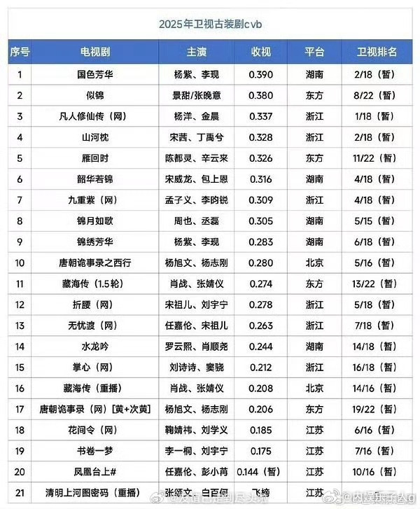 恭喜田曦薇《逐玉》东方卫视cvb 集均0.476,cvb全卫视暂年冠&古装史冠田