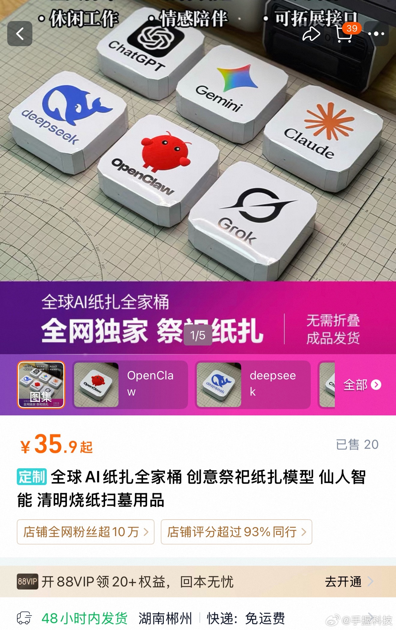 DeepSeek被做成纸扎了还有新款iPhone17,做的还挺逼真…搜了某宝只有这一家在做,估计很快会有做纸扎的商家跟上了。
