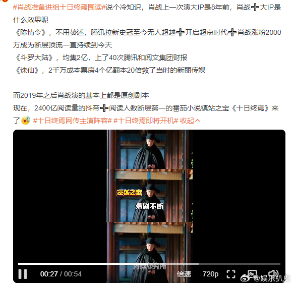 肖战十日终焉官宣流程肖战上一次演大IP是8年前肖战准备进组《十日终焉》了,肖战家
