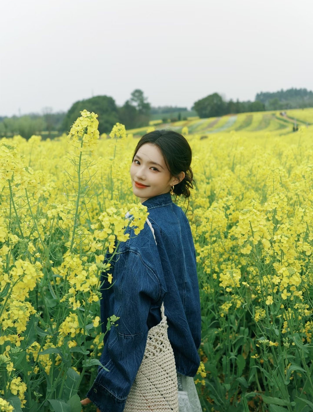 林允春季油菜花田图片~