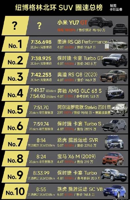 小米YU7 GT真的要来了 第一次在纽北无伪装跑圈,期待官方成绩公布 很明显已经在进行宣发前的预热了,离正式上市确实不远了,下一次发布会见! 本次无伪装进行测试,意味着设计已经定型了,在原YU7的基础上增加了更多性能套件,显得非常犀利,喜欢的宝子们准备40+就够了。