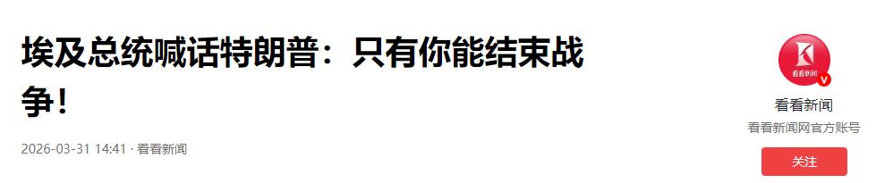 太荒诞了!埃及总统向特朗普哀求:拜托,总统先生,请帮帮我们要停止战争。除了您,没人能阻止。 2026 年 3 月 30 日,在埃及开罗举办的2026 埃及能源展正式会议上,埃及总统塞西面向现场各国嘉宾、能源行业从业者与全球媒体,发表了一场语气恳切、近乎哀求的公开演讲。 塞西在演讲中毫无保留地表示,他已多次向特朗普总统当面传递诉求,在眼下这场席卷海湾的战火面前,除了特朗普,没有任何国家、任何势力能真正叫停战争,他恳请特朗普总统出手相助,凭借自身的影响力彻底停止这场让中东陷入深重灾难的冲突。 塞西的这番公开喊话,绝非临时起意的外交表态,而是埃及在地区冲突持续升级、自身安全与经济遭受重创下的无奈之举。 2026 年 2 月底以来,美国与以色列联手对伊朗发起的军事打击已持续超一个月,这场战事完全偏离了特朗普最初 “速战速决” 的预想,不仅没能快速达成战略目标,反而不断向外蔓延,把整个海湾地区拖入失控的边缘。 作为中东地区的关键大国,埃及虽未直接卷入交战,却承受着冲突外溢带来的最直接冲击:苏伊士运河作为埃及经济的核心命脉,此前已因红海、曼德海峡的航运安全问题收入大幅缩水,海湾战事的持续,让本就脆弱的国际航运与能源贸易再次面临中断风险,埃及的外汇储备、民生保障、国内稳定都被牢牢绑在冲突的战车上,没有任何退路。 在这场能源展的演讲中,塞西没有使用晦涩的外交辞令,而是用最直白的语言道出现实:当前海湾的战火已经超出地区国家的管控范围,伊朗方面立场始终强硬,新任最高领袖穆杰塔巴得到革命卫队与情报系统的全力支持,对抗决心没有丝毫动摇; 美以的军事打击持续多日,覆盖伊朗军事、能源等多个领域,却没能实现预期的 “制胜” 效果,双方的硬刚只会让冲突无限升级。 埃及一直致力于推动地区缓和,此前多次与伊朗、沙特、阿联酋等国沟通协调,也持续与美国官方保持密切接触,试图为停火创造条件,可所有的外交努力,在美方的军事决策面前都显得微不足道。 这也是塞西为何会在国际公开场合把话挑明 —— 只有掌握着对以军事支持、对伊打击主导权的特朗普,才有能力真正按下战争的暂停键。 从地区战略格局来看,特朗普原本盘算着通过一轮高强度军事行动,快速打压伊朗的军事与能源能力,巩固美国在海湾的主导地位,同时兑现对以色列的安全承诺。 但现实给了美方沉重一击:伊朗的权力体系稳固,国内民众与军方高度团结,美以的打击行动没能撼动伊朗的核心架构,反而让霍尔木兹海峡能源运输受阻、国际油价持续飙升、中东各国的安全底线不断被突破。 埃及作为非交战国,却要承担冲突带来的连锁反应:红海航运受阻导致外贸停滞、能源价格上涨加剧国内民生压力、地区动荡引发边境安全隐患,塞西政府的执政压力随之陡增,这才让塞西放下身段,以近乎哀求的姿态向特朗普求助。 塞西的这番表态,也道出了中东多数地区国家的共同心声。海湾产油国、红海沿岸国家、北非国家都在这场冲突中蒙受巨大损失,各国都迫切希望战争尽快停止,恢复地区的和平与稳定,但没有任何一个国家有能力制衡美国的军事行动。 特朗普作为美国政坛的核心决策者,对中东战事的走向拥有绝对话语权,这也是塞西反复强调 “只有特朗普能阻止战争” 的核心原因。埃及既没有实力与美国硬刚,也没有办法让伊朗妥协,只能寄望于特朗普改变决策,停止军事升级,推动双方回到谈判桌前解决分歧。 对于特朗普而言,塞西的公开哀求,既是来自盟友的迫切诉求,也是不得不面对的现实压力。 一方面,埃及是美国在中东的重要战略盟友,苏伊士运河的稳定直接关系到美国的航运与能源利益,美方无法完全无视埃及的合理诉求; 另一方面,特朗普此前已多次放出狠话,扬言要对伊朗的关键设施展开全面打击,此时选择收手,意味着此前的军事投入与战略表态都会大打折扣,国内政治舆论、对以色列的承诺也会受到影响。 而塞西在国际公开场合的喊话,直接把特朗普推到了必须做出选择的位置:是继续推进战事让中东彻底陷入混乱,还是顺应地区国家的诉求叫停战争,特朗普的每一个决策,都将直接决定海湾地区的未来走向。 这场发生在埃及能源展上的演讲,看似是一位国家领导人的个人诉求,实则是整个中东地区对和平的迫切呼唤。海湾战争持续越久,地区国家的损失就越大,能源危机、安全危机、经济危机交织在一起,最终会让整个中东都付出难以挽回的沉重代价。 塞西的哀求,没有华丽的辞藻,没有强硬的姿态,只有对和平最直白、最真诚的渴望。而这份渴望能否得到回应,决定权终究握在特朗普手中。 眼下的海湾地区,停火的契机就在一念之间,埃及等地区国家已经发出了最强烈的呼吁,接下来,就看特朗普如何做出抉择,是让战火继续蔓延,还是给中东一个重回稳定的机会。
