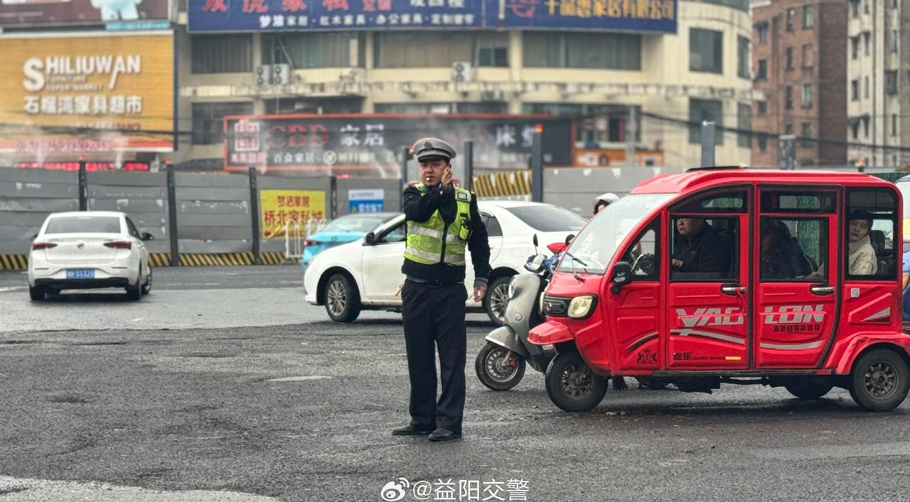 【全力疏堵保畅通,坚守一线护平安】湖南交警在行动 自益阳市资阳区桥北广场封闭施工以来,周边道路通行压力明显增大。为切实维护道路通行秩序与安全,益阳交管资阳大队民辅警坚守执勤一线,在关键路口及周边路段加大疏导管控力度,根据车流变化及时优化分流措施,全力应对车流高峰,最大限度减轻施工对交通运行带来的影响。面对群众咨询出行路线、绕行方案等问题,执勤人员耐心倾听、细致解答,用暖心服务为群众排忧解难。有市民不禁感慨:“幸亏有交警在这执勤,不然不知道要堵到什么时候。” 他们以坚守诠释责任担当,用汗水守护道路畅通,全力保障辖区交通平稳有序运行。文明交通礼行天下 @湖南交警 @湖南公安