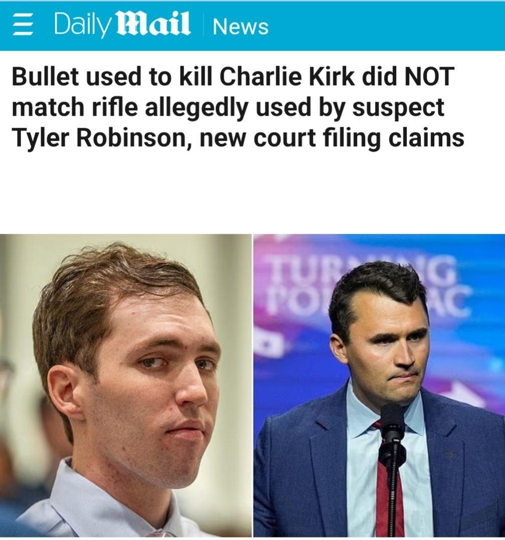 英国《每日邮报》最新法庭文件曝光,美国保守派大佬查理·柯克遇刺案出现致命漏洞:尸检提取的致命子弹,和检方指控的嫌犯泰勒·罗宾逊的步枪,弹道完全不匹配! 22岁的罗宾逊辩护律师,直接拿美国烟酒枪炮及爆炸物管理局(ATF)的鉴定结果锤检方:子弹膛线痕迹和嫌犯步枪根本对不上,没法证明这把枪是作案凶器。辩护方已经把这份鉴定当核心无罪证据提交,还申请把预审听证会至少推迟6个月。 更讽刺的是,罗宾逊曾在聊天记录里说“步枪是我留下的唯一证据”,检方原本认定这把他爷爷送的步枪就是凶器,如今弹道鉴定直接把核心证据链彻底干碎。 查理·柯克是美国知名保守派组织“转折点美国”创始人,遇刺案本就轰动全美,这次证据反转直接让案件彻底反转,后续庭审走向彻底成谜。