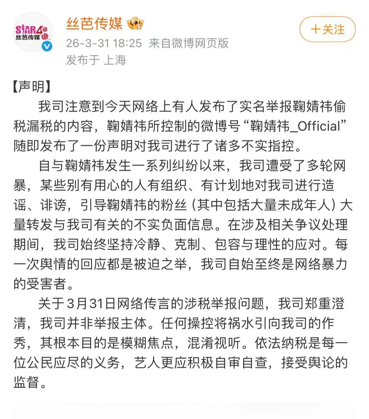 丝芭三问鞠婧祎有意思了,丝芭传媒说不是他举报的鞠婧祎。并发出了三连问