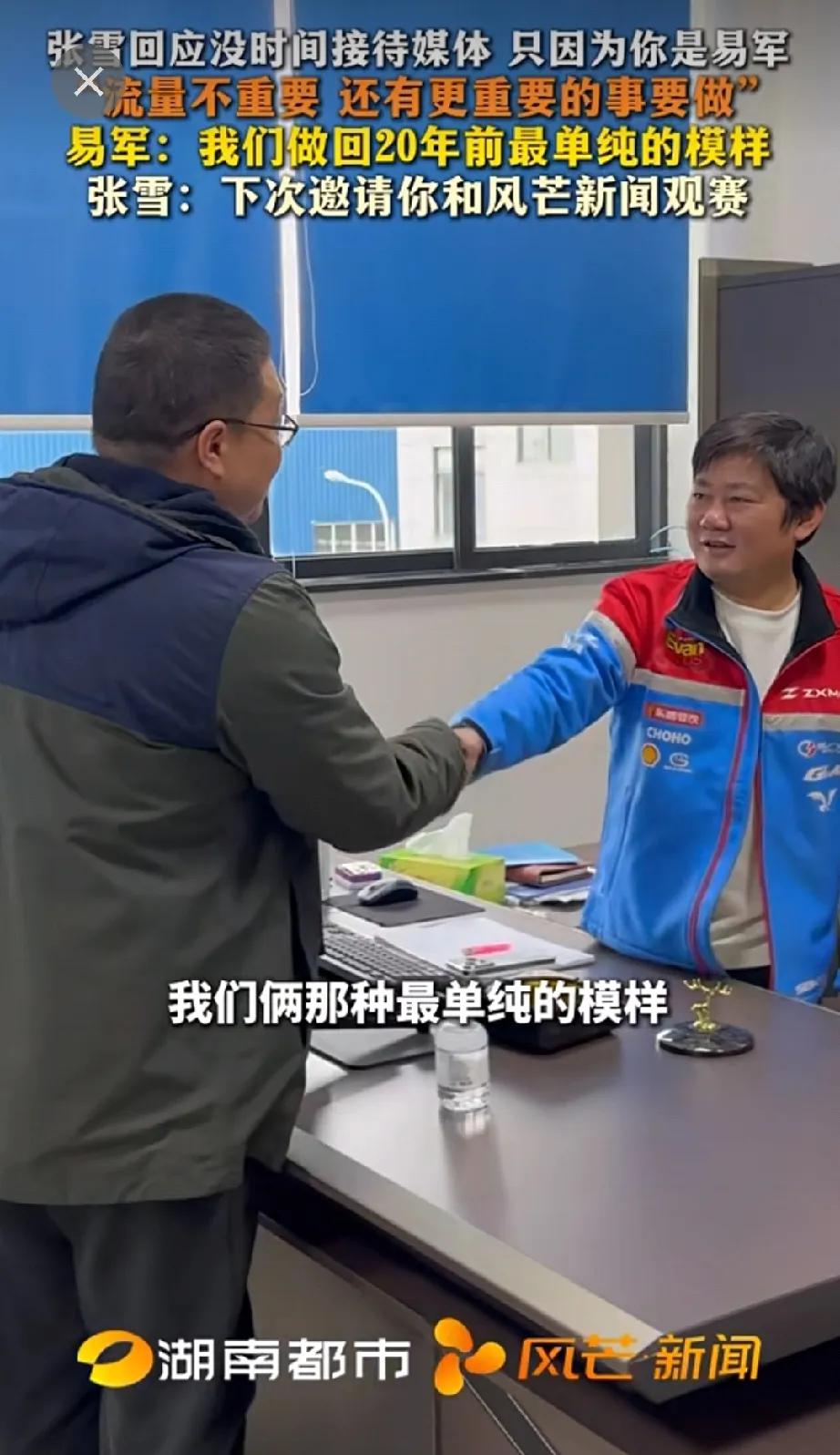 三十年河东,三十年河西! 张雪机车夺冠后,张雪谢绝了所有媒体的采访,唯独对一个人例外[玫瑰]。 这个人就是他当初追了100公里,也要他给自己拍视频的记者,当时湖南电视台的记者易军。 张雪对易军说:是因为你,我才接受采访的,别人我真的没时间。即使你介绍的也不行。 说完后,两个人都笑了。[捂脸] 其实两个人这些年一直都有联系,平常也经常一起吃饭,关系还不错。 今年年初,易军还问张雪说:如果当初不是我给你拍视频,你觉得你还有今天吗? 张雪说:那当然,最多就是晚几天而已。 不得不说,张雪还是年轻时的样子,单纯且自信[呲牙][呲牙]