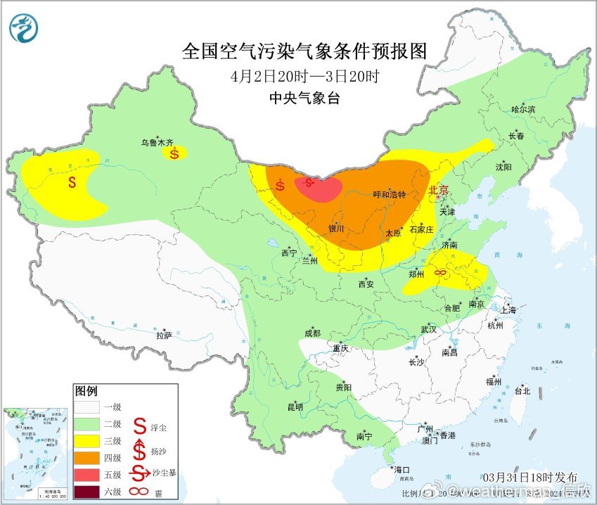 另外4月2日至4日,因为高空槽和气旋影响,西北、华北、黄淮西部等地的部分地区自西向东有扬沙或浮尘天气,其中内蒙古西部、甘肃西部等地的局部地区有沙尘暴。