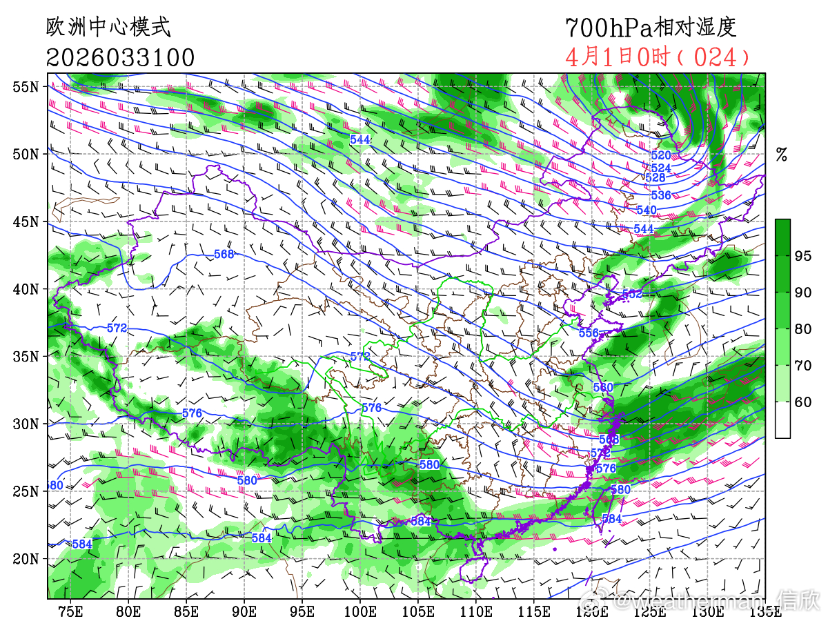 从天气形势看,明晨黄河以南多地,近地面层的湿度大。但700百帕转为西北风,500百帕也处于槽后西北气流中,使得夜间到清晨,华中华东等地放晴。这样晴空辐射降温叠加冷平流降温,导致水汽凝结成雾。