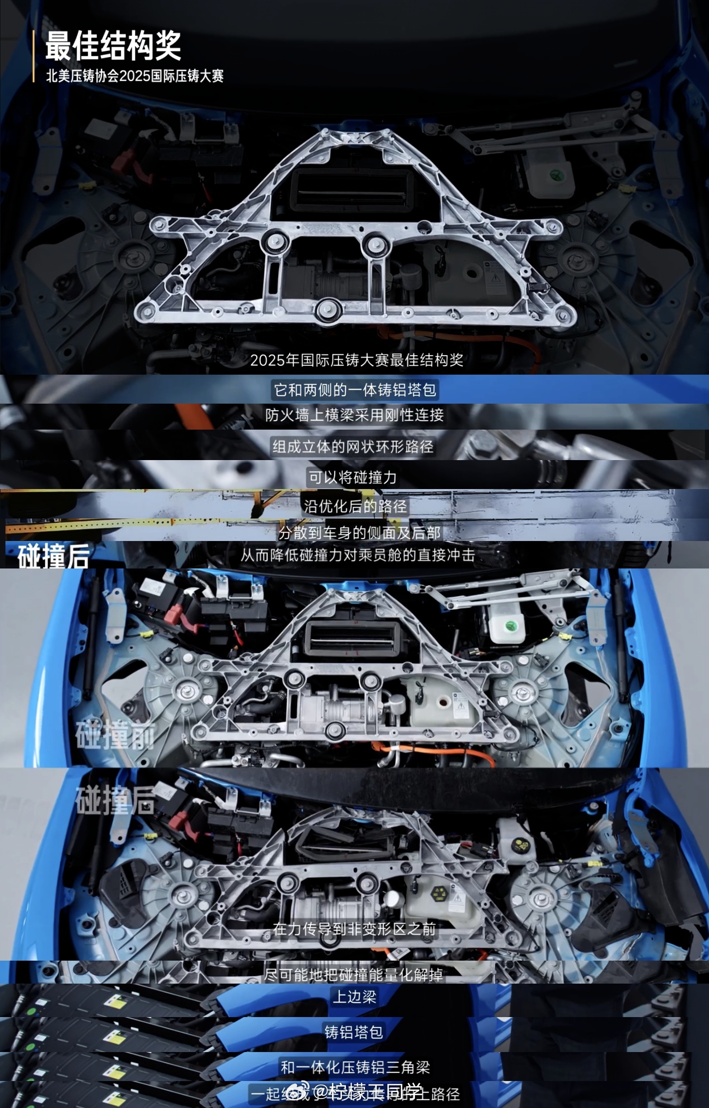 小米发布新一代SU7拆解视频这波够硬核,在央视的见证下,小米新SU7完成了相对速度120km/h的50%正面碰撞测试,这是行业同类测试中速度最快、能量比国标高出1.44倍的极限挑战