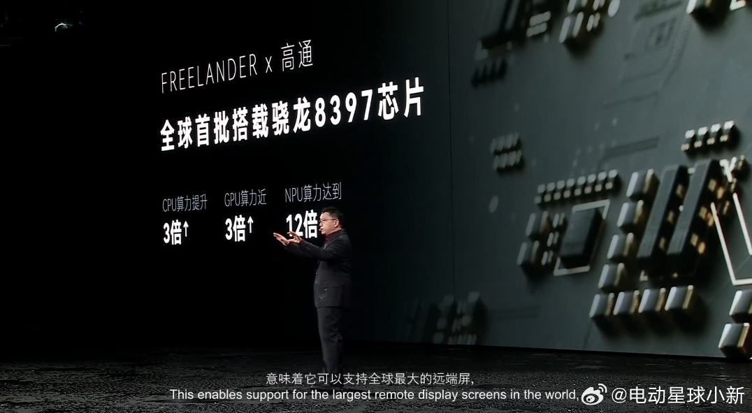 FREELANDER神行者还有新东西:会是全球首批搭载高通骁龙8397芯片的车型。相比现在主流芯片的CPU算力强3倍、GPU算力强3倍、NPU算力强12倍。