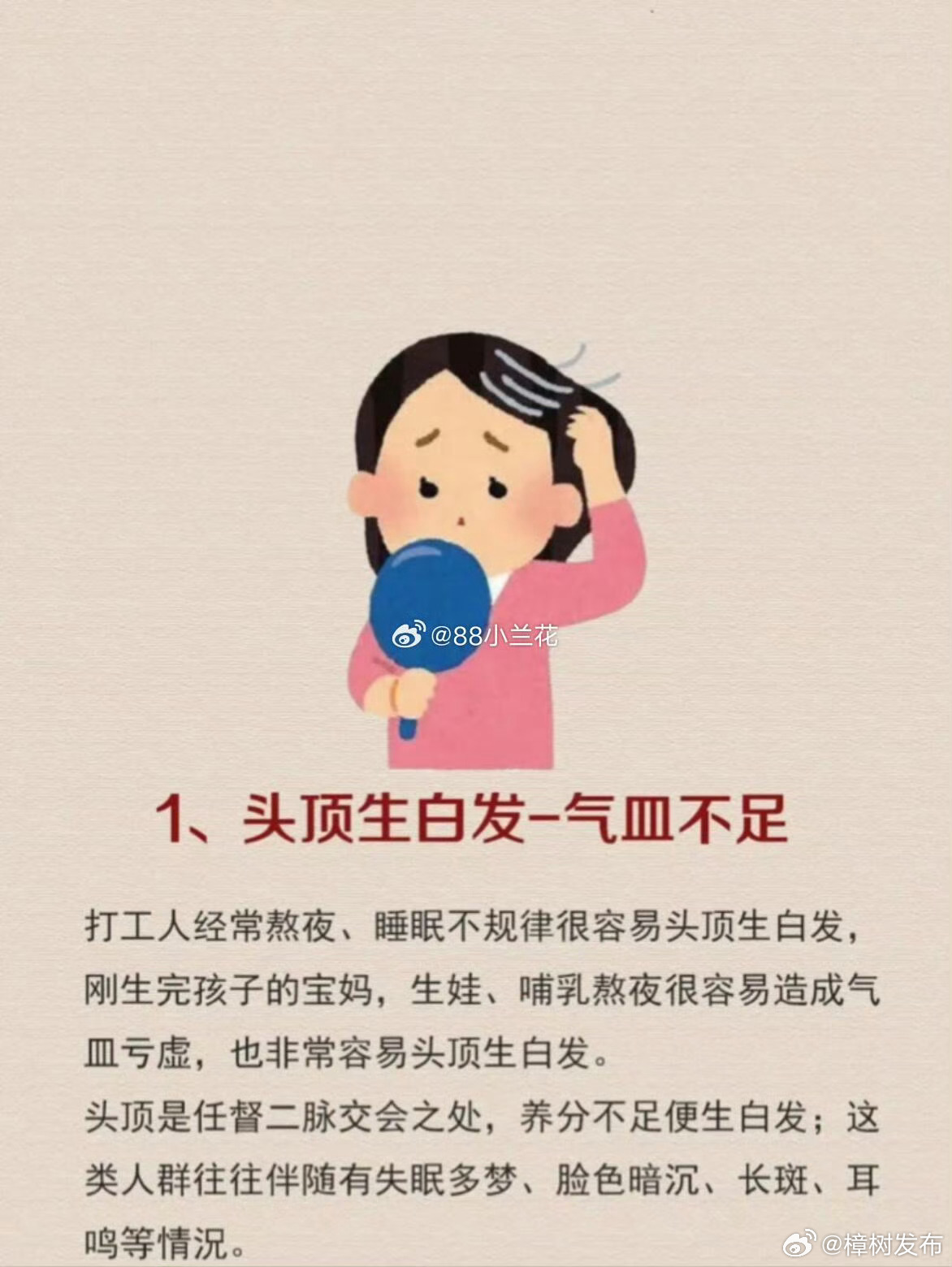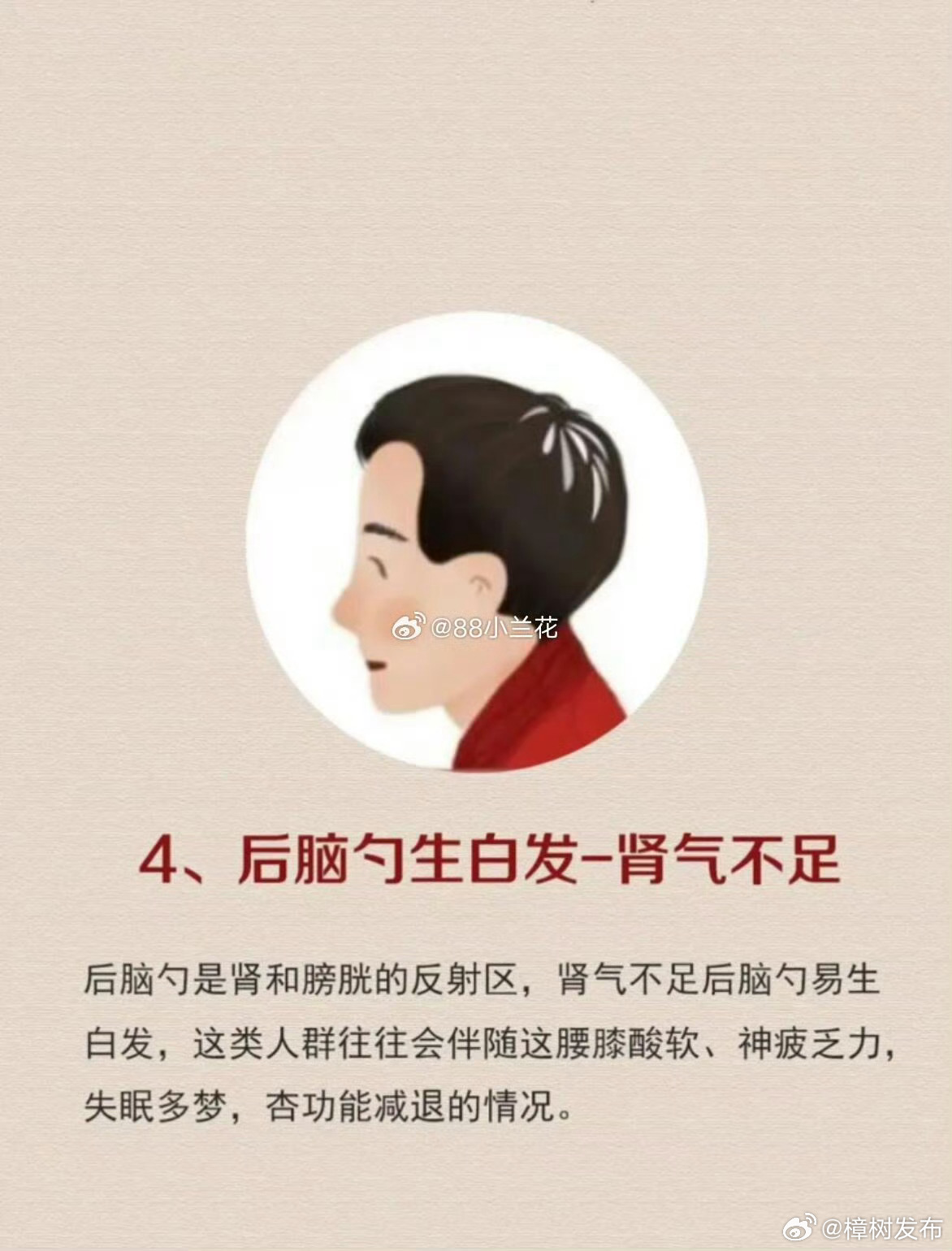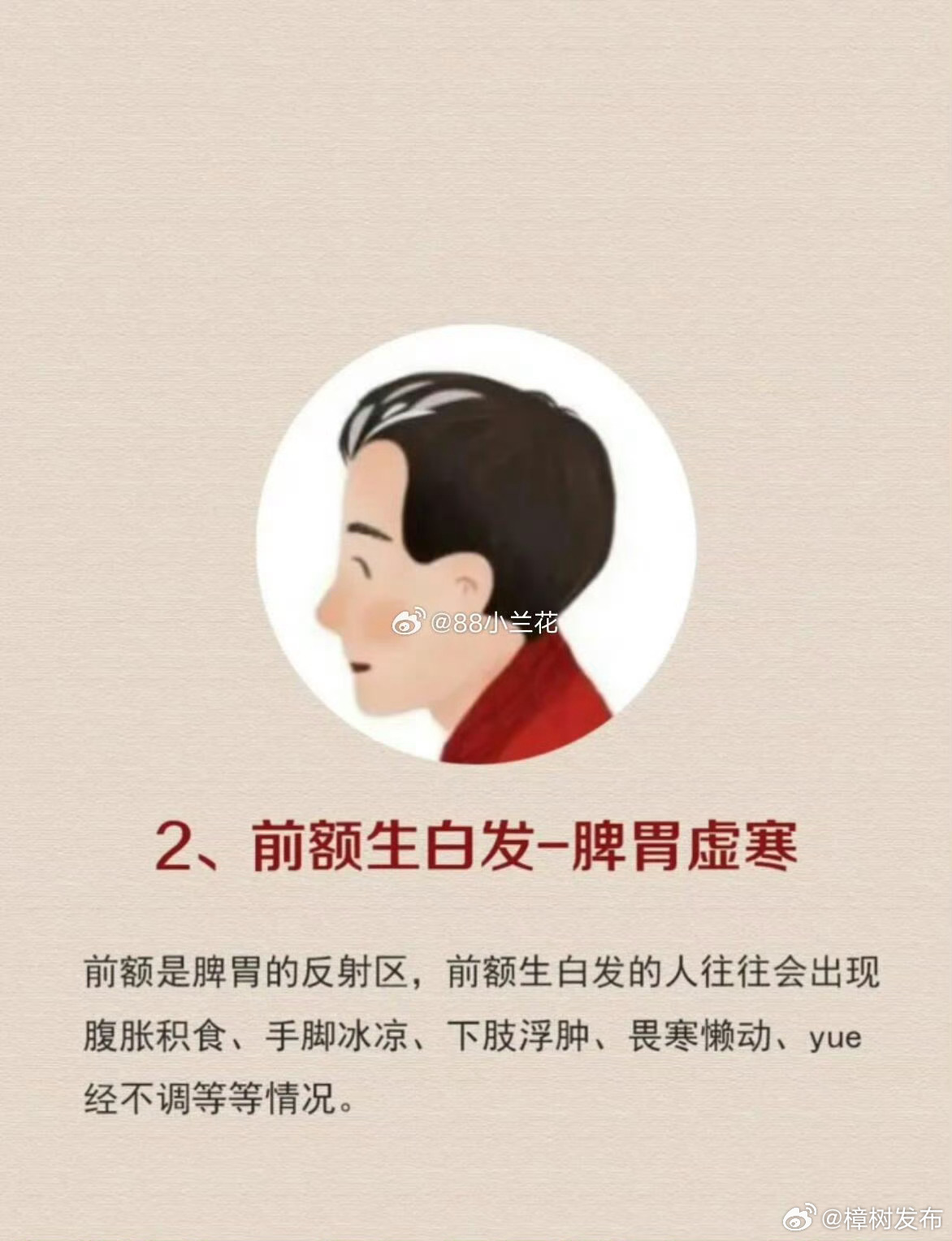 白发位置暗示健康问题白发不是随便长的!不同位置的白发,都是身体在“传递信号”白发位置藏健康信号!身体发出的信号,养好脾肺肾对照看看头顶白:气血不足,常伴失眠暗沉长斑;前额白:脾胃虚寒,易腹胀脚凉经不调;两鬓白:肝火旺,爱发脾气还口干眼涩;后脑勺白:肾气不足,腰膝软、易疲惫失眠。白发不只是老,是身体在喊“补补”啦未发现鞠婧祎涉税问题