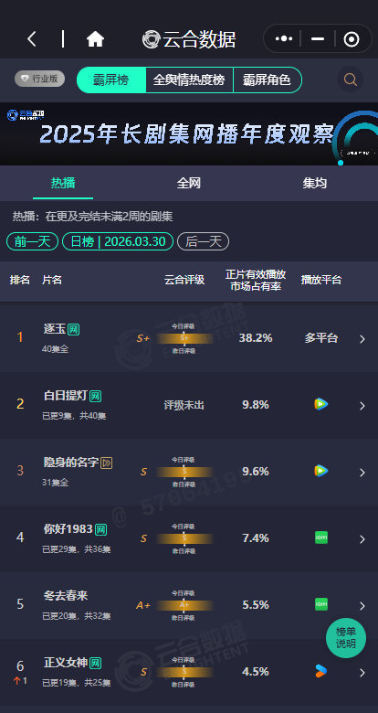 白日提灯9.8%白日提灯云合9.8% 白日提灯9.8%,白日提灯云合稳步上升中,剧情和节奏都很在线,期待住我们的万灵之主和小段将军的故事接下来的发展啦~ 曝迪丽热巴滞留迪拜原因