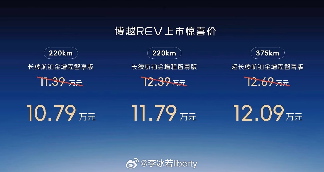 曾经吉利燃油SUV的大IP新能源时代下历经了四代如今第10个年头在新能源时代转型迭代吉利博越REV迎来上市3款车型价格11.39-12.69w叠加上市权益看 图2上市权益送配置 图3