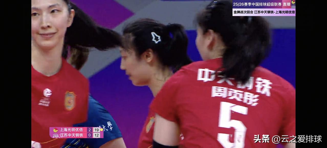 上海状态回春,决赛次回合扳回一城。目前大比分1:1! 今天上海在发接发要好于江苏,尤其范赖克。虽有失误,但是Ace球至少有3个,没仔细数。 上海三叉戟,江苏一个没限制住。多点开开花让江苏疲于左右奔跑拦网。 尤其仲慧频频借打手出界,完全摆脱上场低迷的状态。 同样前两局,万梓玥背走沃隆也没拦住。无可奈何摇头叹气! 今天小将赵哲熙替补发球不怵场,杨舒茗关键分不手软。 说句实话:第三局江苏心态已经崩了,一传、防守瞎扑腾。 今天吴梦洁有点紧张,一上来就飞一传。不过进攻还是在线。 就像上一场的上海,一传会传染。唐欣一传更差! 江苏和上海互换角色! 唐欣有点被限制了,进攻线路有点单一; 周页彤2号位间断性隐形,手被仲慧借烂了; 杨佳3号位下球有点费劲 …… 明天将进行第三回合,且又在上海的主场,谁能获得总冠军?我们拭目以待!