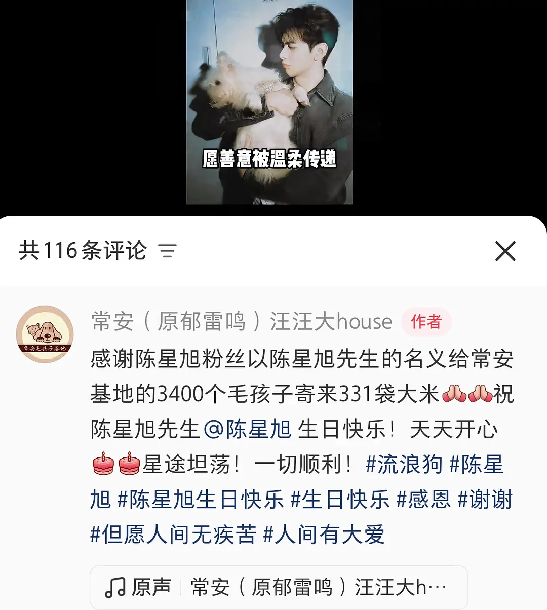 陈星旭本人就是很真诚的一个演员,陈星旭今天生日,他的粉丝粉随正主,给流浪狗基地做了捐赠,还有默默地春蕾计划捐款,给陈星旭庆生。陈星旭和粉丝都是善良又低调呀!祝陈星旭生日快乐,星途璀璨,期待演员陈星旭为我们带来更多精彩的故事!