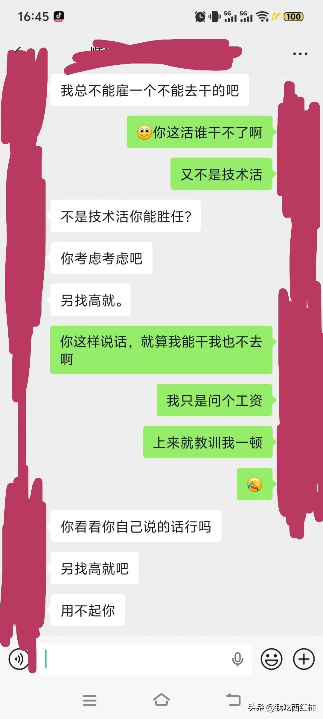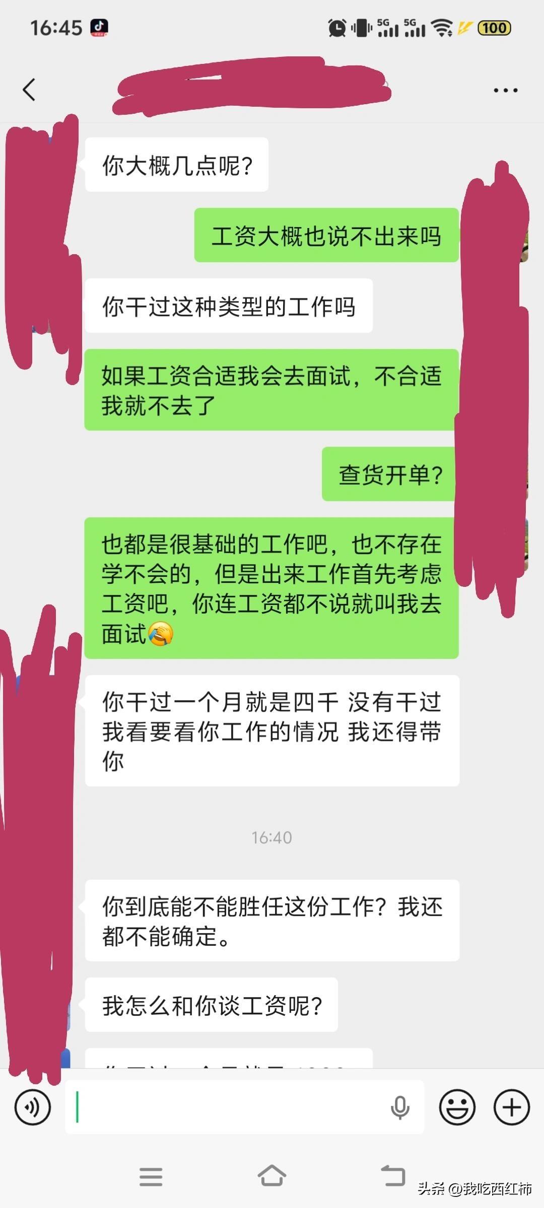 找工作被骂了 姐妹们我从上一份工作离职还不到三天,这几天我一直在找工作,然后直聘上有个人找我,便加了她微信,但是聊着聊着就崩了,我回过神来就感觉有点懵了,是不是我的问题啊,我听劝并且虚心请教各位姐妹们