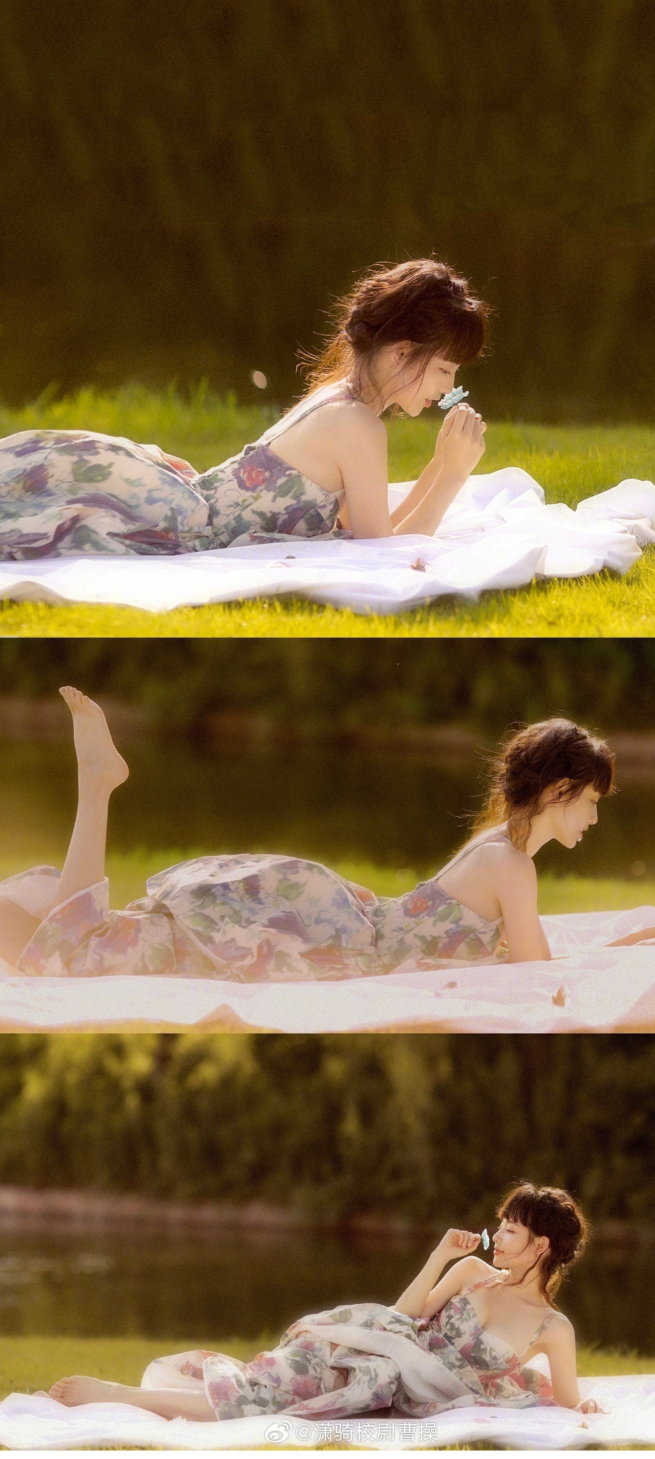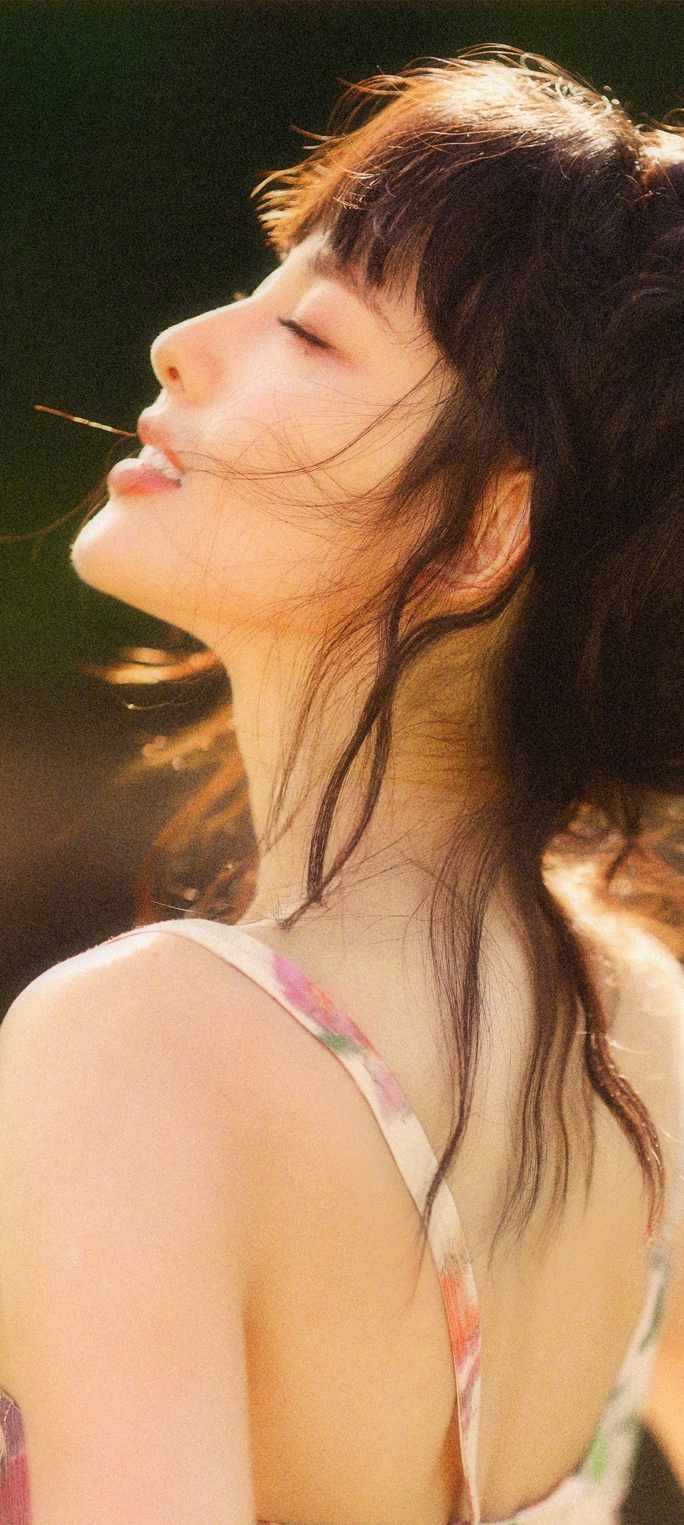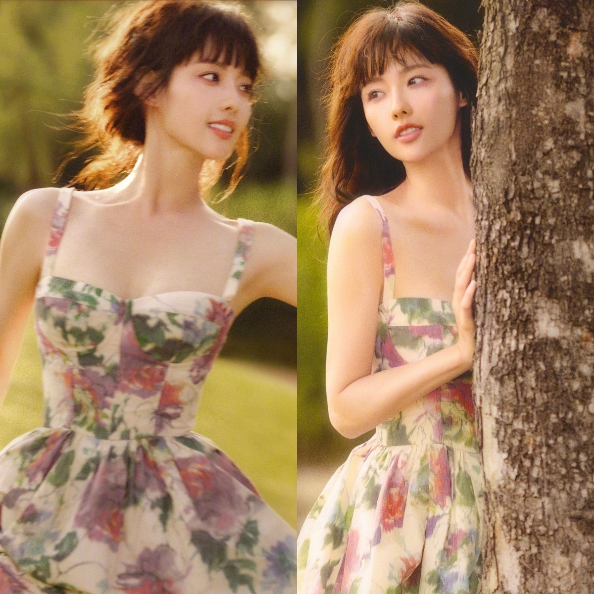 张嘉倪穿搭壁纸:吊带花裙文艺感,紫菱是你吗?张嘉倪