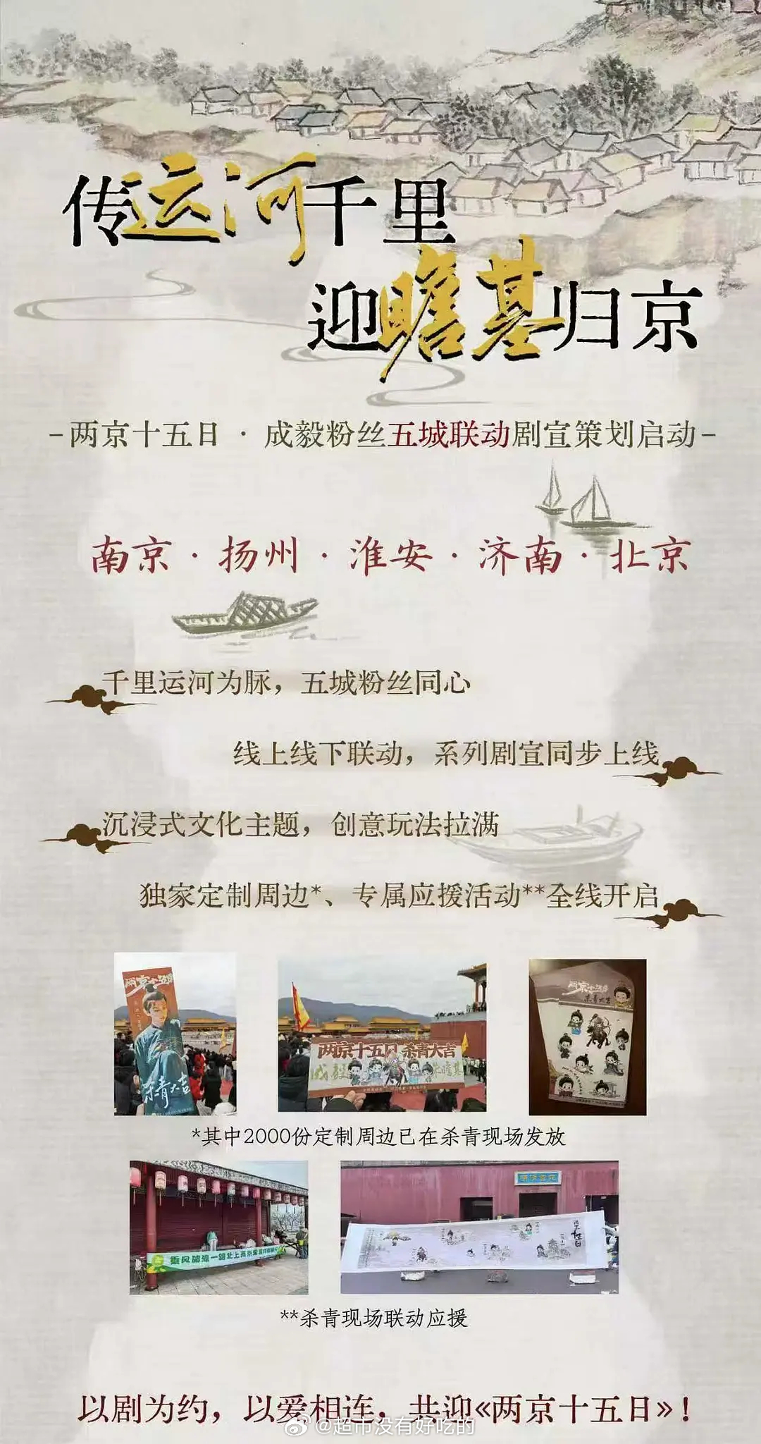 成毅粉丝《两京十五日》五城联动剧宣即将启动是太子归京的路线,与剧结合代入感加强创