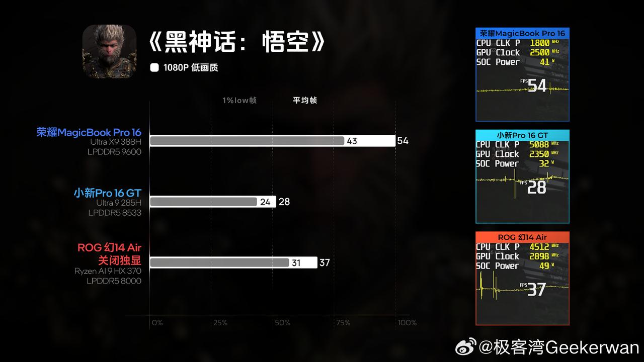 今年荣耀笔记本电脑新品:荣耀MagicBook Pro 2026款 16吋,虽然没有搭载独显,但是X9 388H的GPU果然靠谱,3A游戏大作1080P低画质,居然也能够流畅跑起来,除此之外,续航能力也是顶呱呱的,看起来轻薄、性能、续航也可以兼得啦 畅聊数码新品 数码资讯
