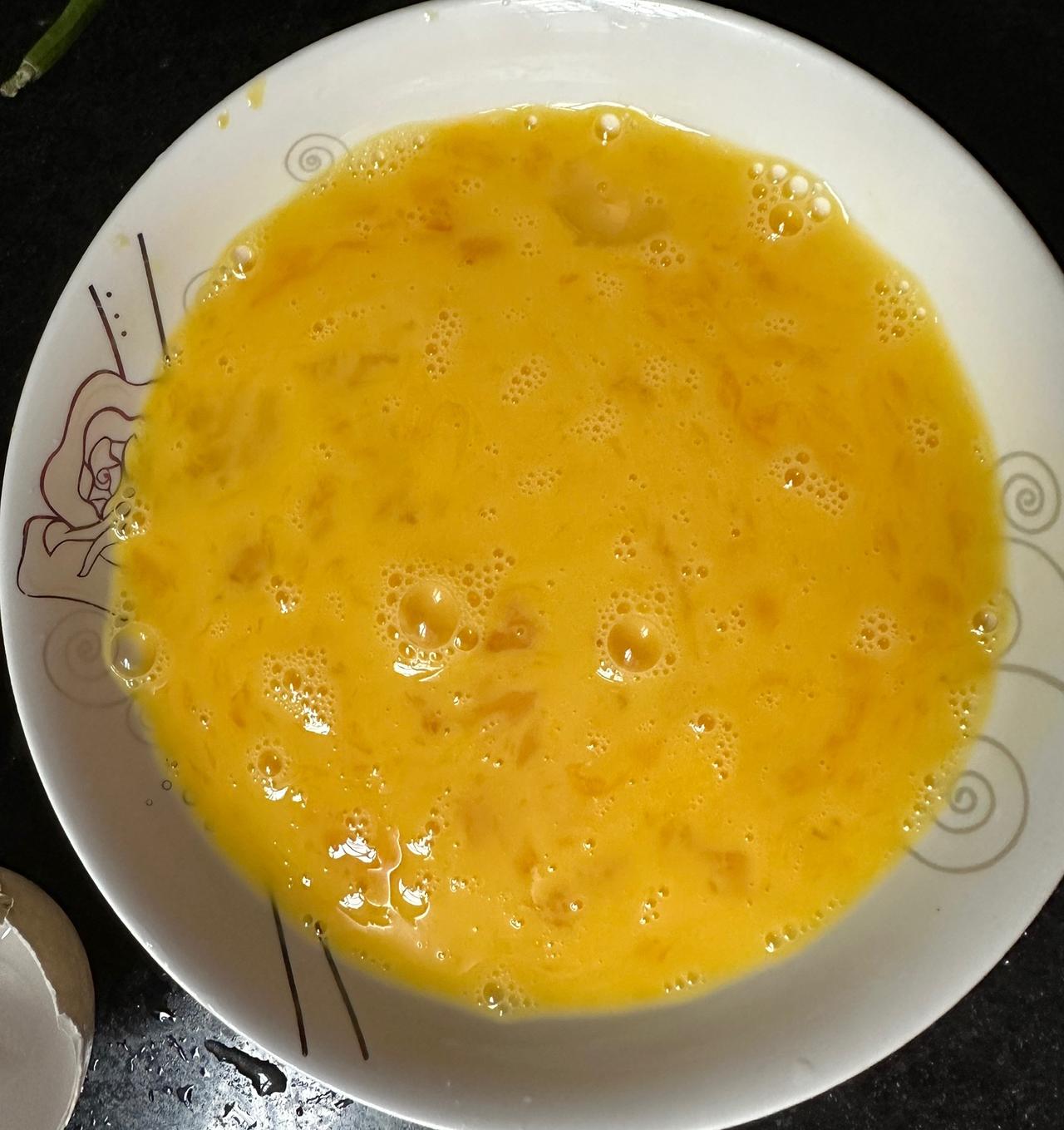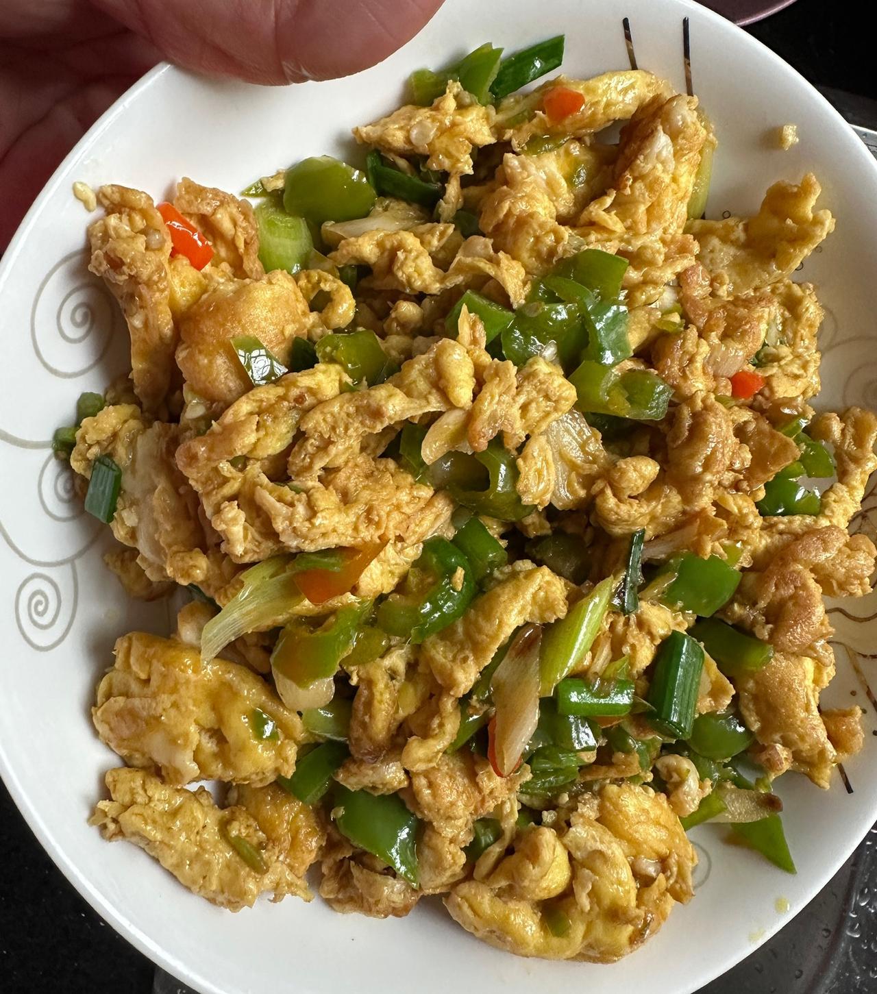 终于把那个4两重的鹅蛋煎起来炒辣椒蒜苗吃掉了! 听人家说鹅蛋煎起来好吃,而且还治头晕, 就特意去农贸市场买了两只鹅蛋来品尝,回家称了一下,一只鹅蛋有四两重,确实抵得上三只鸡蛋的重量呢。 煎鹅蛋的烹饪方法很简单,先把鹅蛋的外壳洗干净,放在菜盘边沿磕一下,鹅蛋壳里的蛋清蛋黄流了出来,都快装满一盘了,好多呀! 加一点点食盐滴几滴清水搅拌,把蛋黄和蛋清搅拌匀称,然后倒进热油锅里煎一下,金黄的鹅蛋就煎成了,倒几滴醋进去把煎好的鹅蛋用筷子夹碎,倒入炒好辣椒蒜苗的热锅里拌几下,一道色香味俱全的鹅蛋接辣椒蒜苗就大功告成了。 记得小时候家里是养过鹅的,那怎么没有吃鹅蛋的印象呢?可能那时养的鹅没有产过鹅蛋,也有可能那时的读书人把考零分称为“吃鹅卵”,母亲不想让我们考试“吃鹅卵”,所以也就不煮鹅蛋给我们吃了。