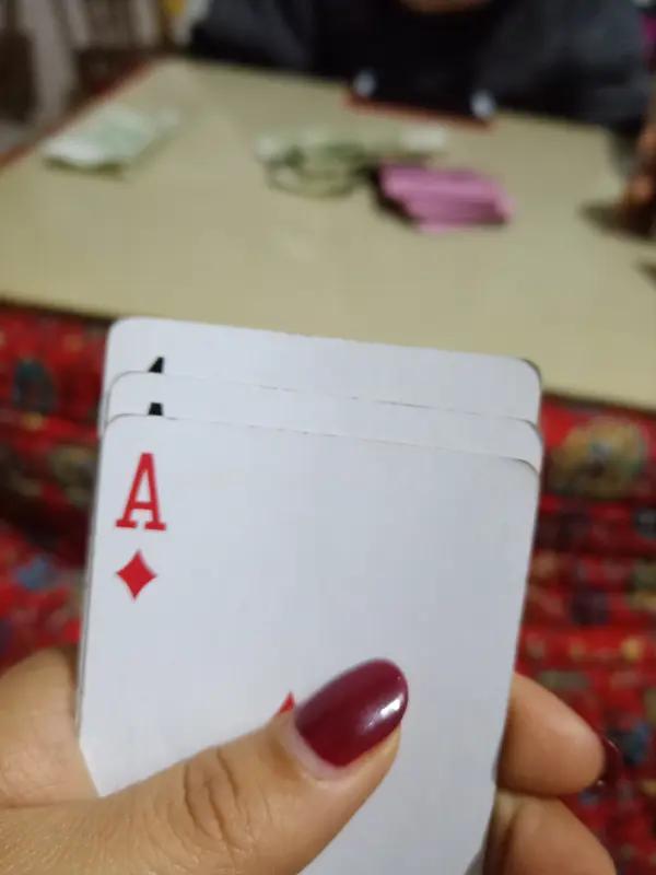 我曾有一回玩炸金花,起初赢了不少钱。这一把,我竟抓到了三个A,刹那间激动得浑身发热、头脑发晕,浑身上下都找不到香烟。我便对赌友说道:“兄弟,我到楼下买包烟就上来。”随后一出门便头也不回地走了,毕竟那可是三个黑桃A啊。