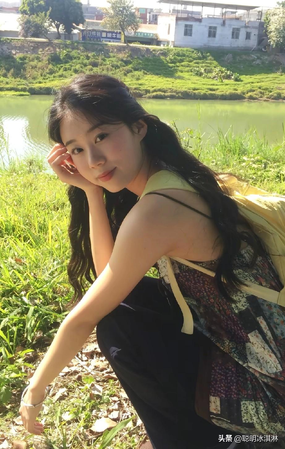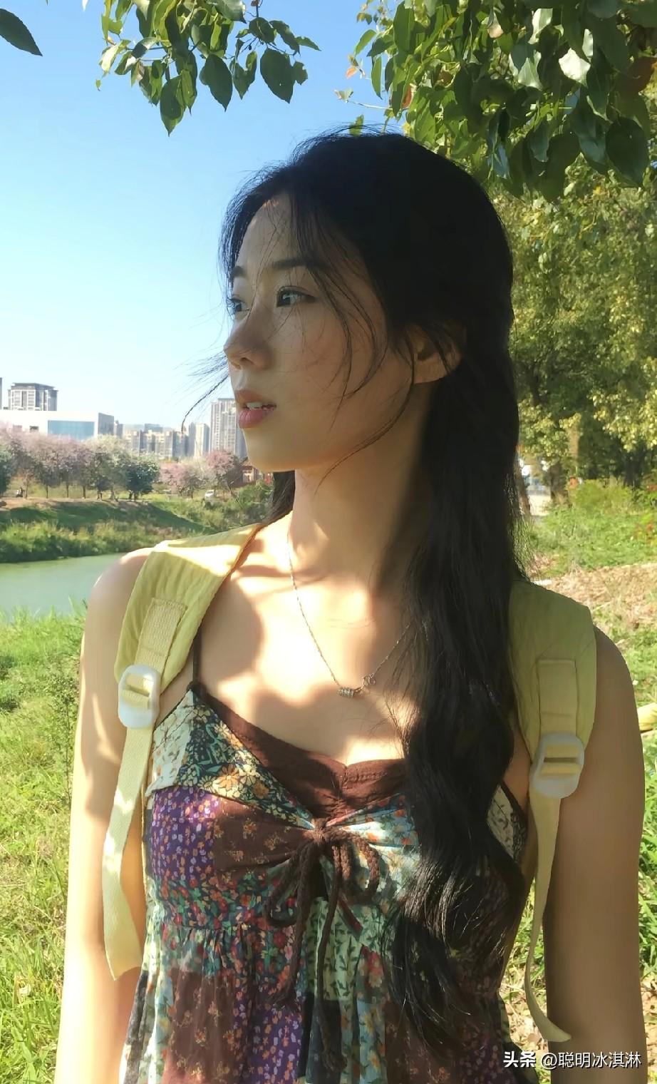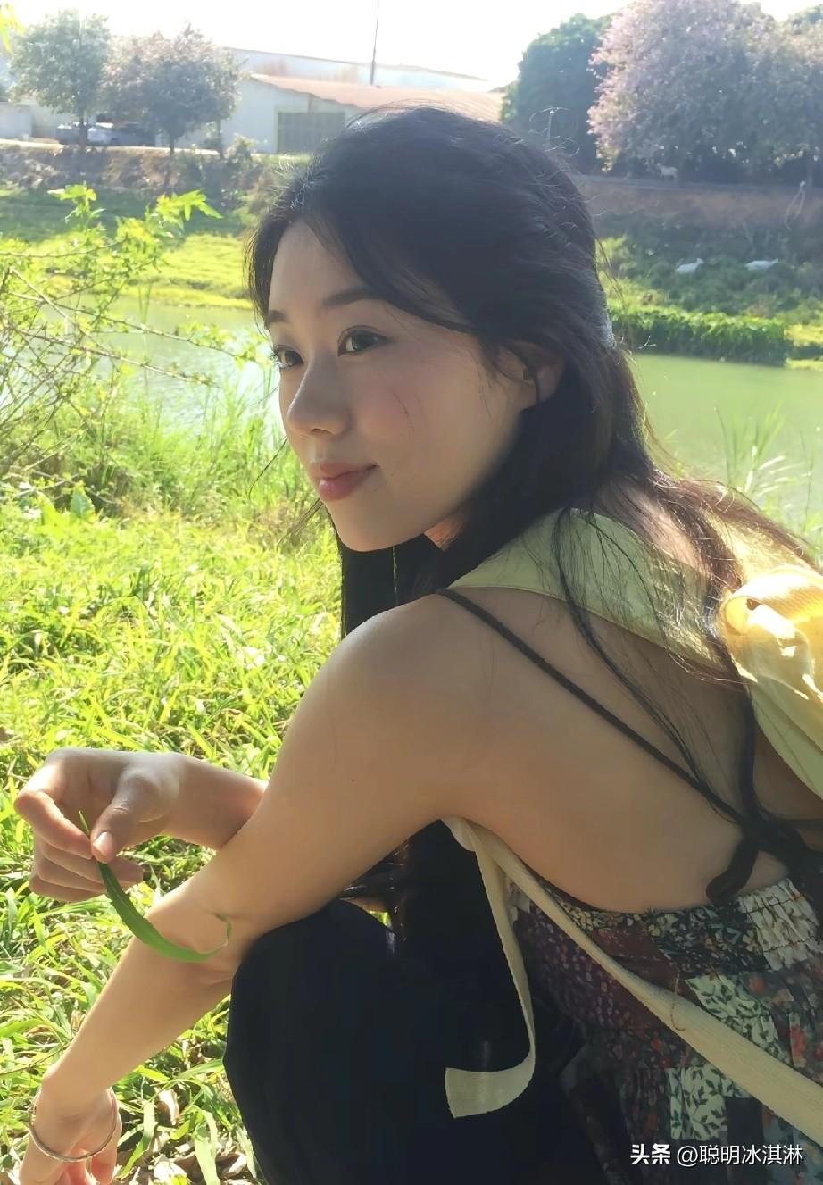 阳光下的少女,微笑着与自然亲密接触。