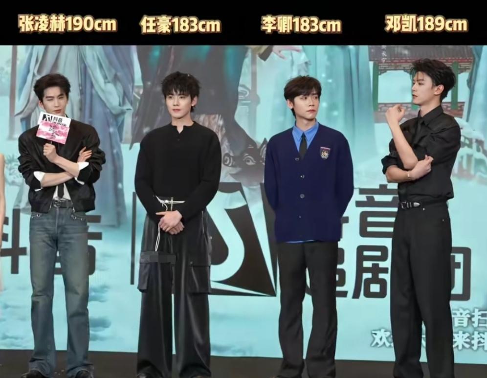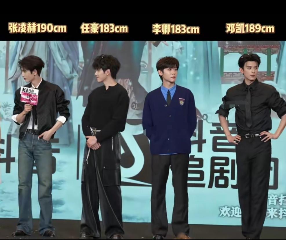 现在好多人都说逐玉里的配角是邓凯出演,甚至有人觉得他站在台上,气场和颜值都盖过了男主张凌赫。但我反倒觉得,两位帅哥都特别出彩,根本不存在谁压住谁的说法。毕竟两人身高几乎持平,只差一厘米,一个一米八九,一个一米九,身形条件都很拔尖。 要说颜值风格,两人确实不一样。张凌赫偏俊美精致,五官更秀气柔和;邓凯则偏硬朗大气,男人味更足,各有各的魅力,完全看个人喜好。 更离谱的是,居然还有人质疑他们的真实身高,说顶多一米七五左右,这真的太不客观了。当时视频里看得很清楚,两位都实打实一米八以上。 而且当天站在最中间两位男演员都穿着厚底黑皮鞋,鞋底增高很明显;反观张凌赫,穿的就是普通平底鞋,几乎没有鞋底加成,身高完全是原生优势,毫无水分。 只是这次他接戏让很多观众觉得不太适合他。邓凯身高 邓凯走秀