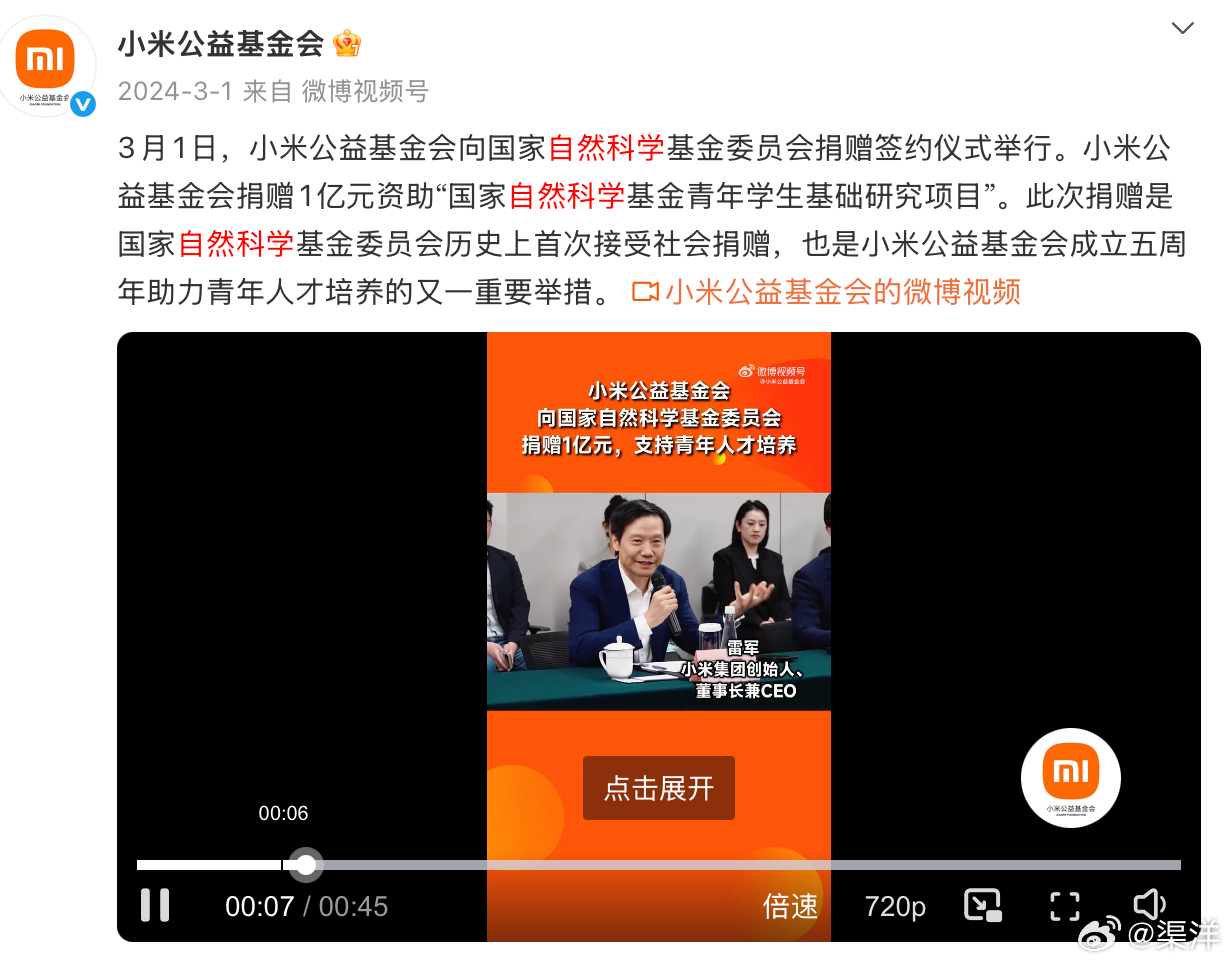 Nature称中国基础研究投入增长超美国 能被 Nature 点名表扬,足以说明小米在支持科研这件事上是真的用心在做。作为首个向国家自然科学基金委捐款的民间公益组织,小米不仅自己大力投入,还带动了腾讯等企业一同加入,共同支持基础研究。作为民间科研资助的开拓者,小米公益将资金切实注入科研体系,既支持前沿创新,也助力高校青年人才培养。雷总也被 Nature 列为投身基础研究的四大民营企业家代表之一。目前小米公益累计捐赠超 8 亿元,覆盖 65 所高校,资助上千名科研人员与上万名学生,长期坚守真的是行业榜样。