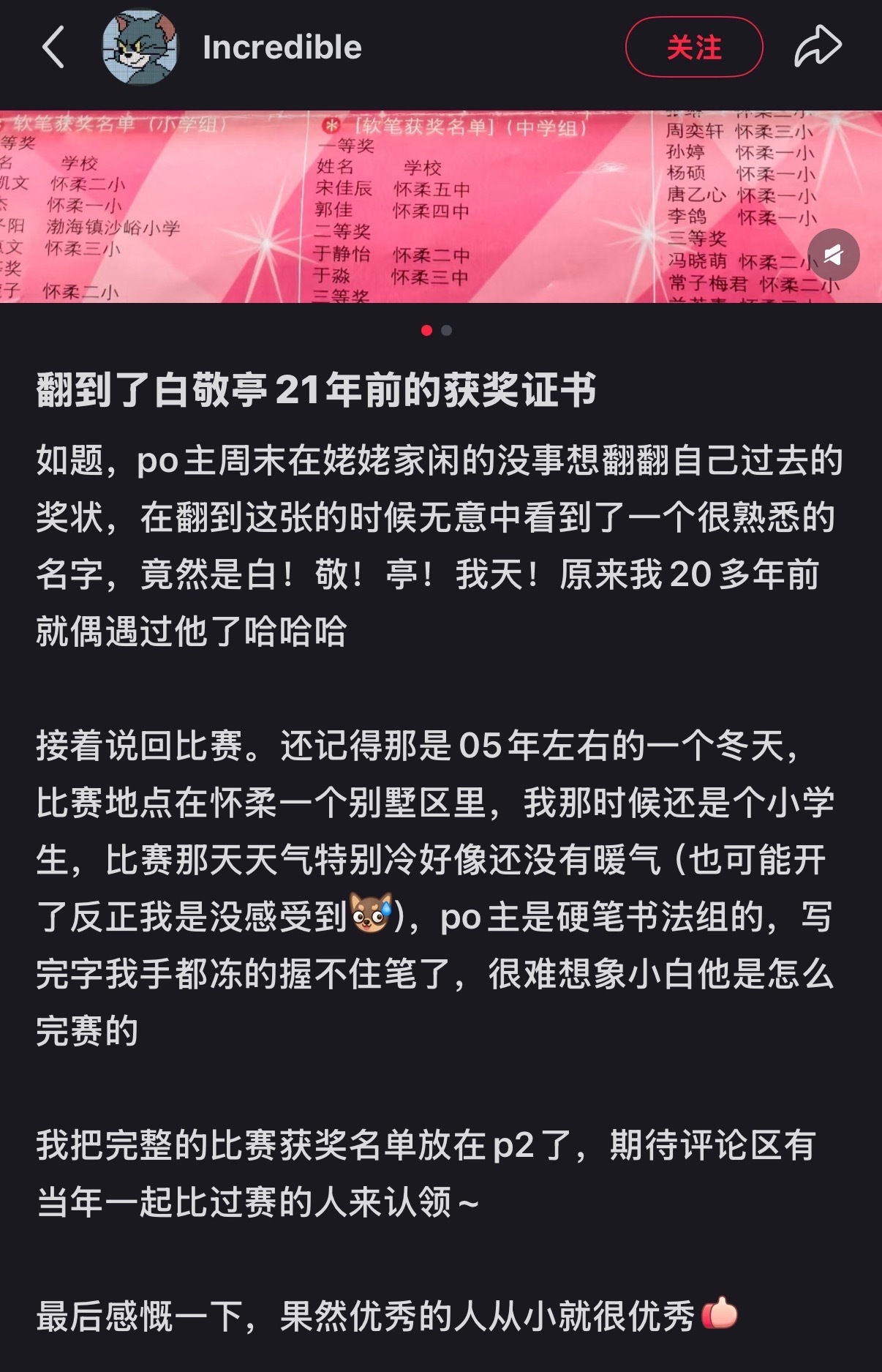 也是看到白敬亭21年前的获奖证书了!