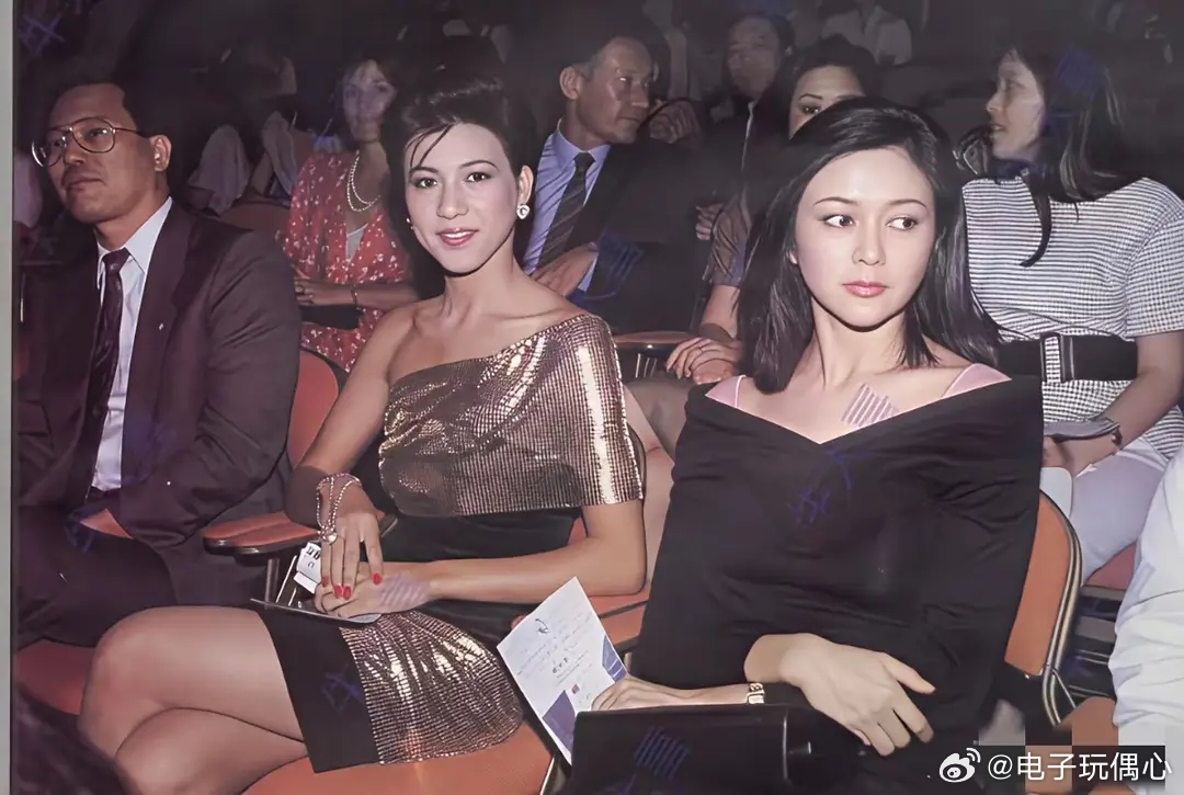 1987年,关之琳,身旁坐的是那一年的亚洲小姐冠军邱月清