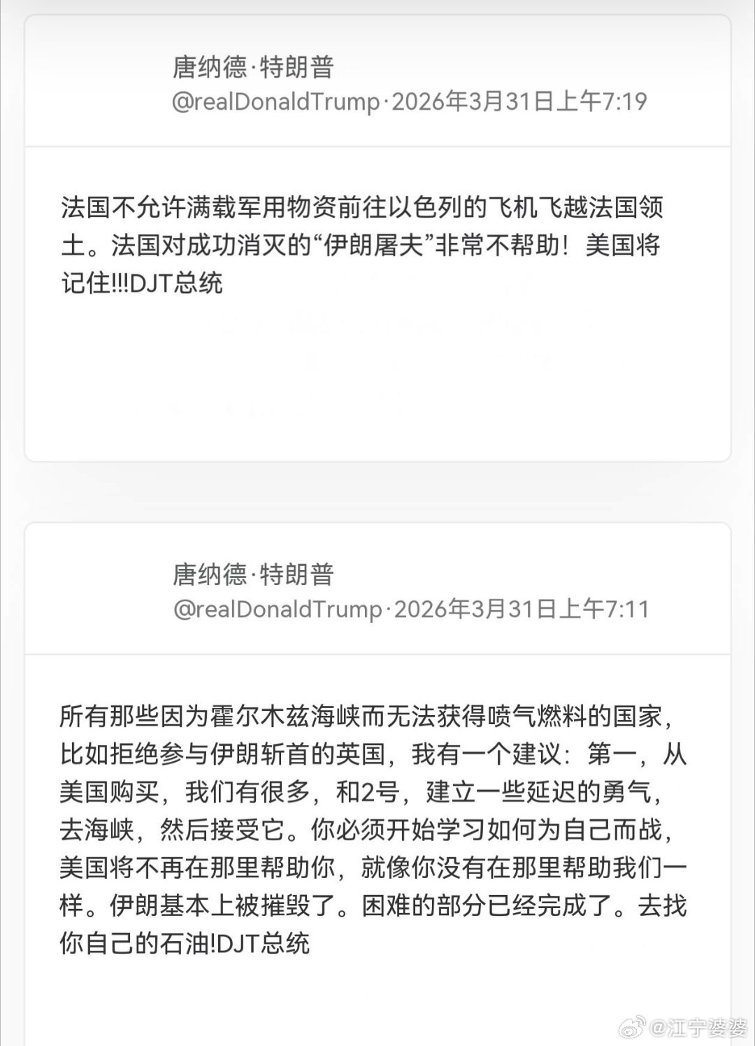 【带英,你因为不和我一起打伊朗,现在买不到油你该着急了吧?朕给你指两条出路:第一,从美国买,我们有的是石油!第二,拿出点迟来的勇气,去霍尔木兹海峡,直接把油抢过来!你们得学着自己为自己而战了,我大美利坚不会再帮你们了,这可是和你们学的。伊朗基本上已经被打垮,最难的部分朕已经替你们做完了。现在,自己去抢!】