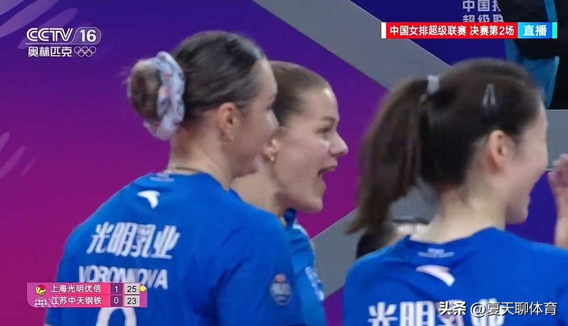 江苏女排第二局白忙活一场!局末靠着吴梦洁一个人反击,追到23平,结果被范赖克的发球,还有强攻直接带走了比赛!唐欣这一传鸡飞狗跳的,施海荣教练还不换下她吗?江苏女排还是养精蓄锐,好好准备下一场吧,今天上海女排太恐怖了,仲慧打出来后,范赖克和沃龙科娃压力也小了一点,与上一场的上海女排,真是判若两人!
