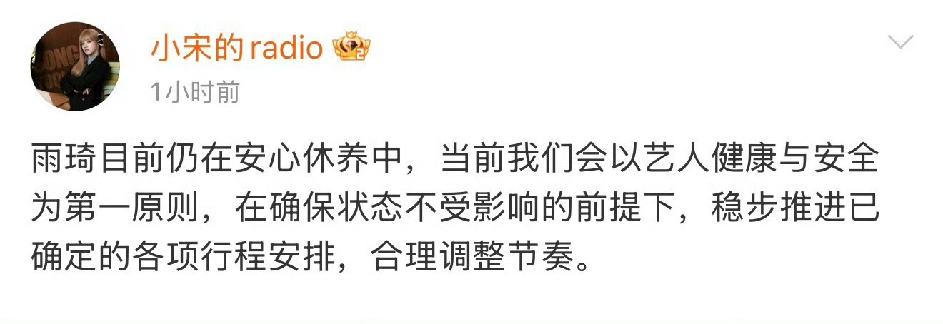 宋雨琦对接回应不录跑男 宋雨琦身体状况尚未恢复,剧烈运动有可能导致病情复发,将遵医嘱而定。一旦确认身体状态允许参与录制,会第一时间告知大家!宋雨琦身体尚未恢复宋雨琦不能剧烈运动