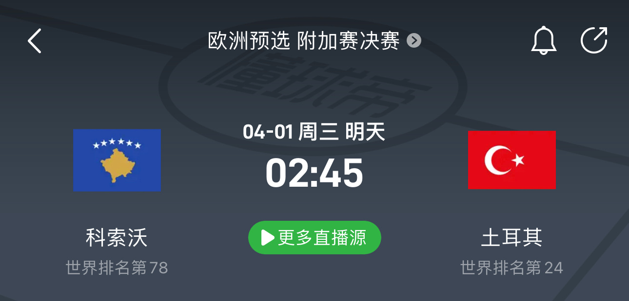 世界杯最后六个名额,看看谁能拿到欧洲预选附加赛决赛:科索沃vs土耳其,瑞典vs波