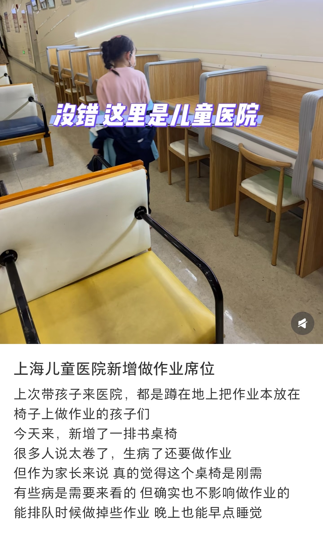 可能有一些孩子确实需要写作业吧,这样也是方便他们。不过我感觉需要长时间待在医院的事情基本都是在挂水,还是让脑子也休息一下比较好
