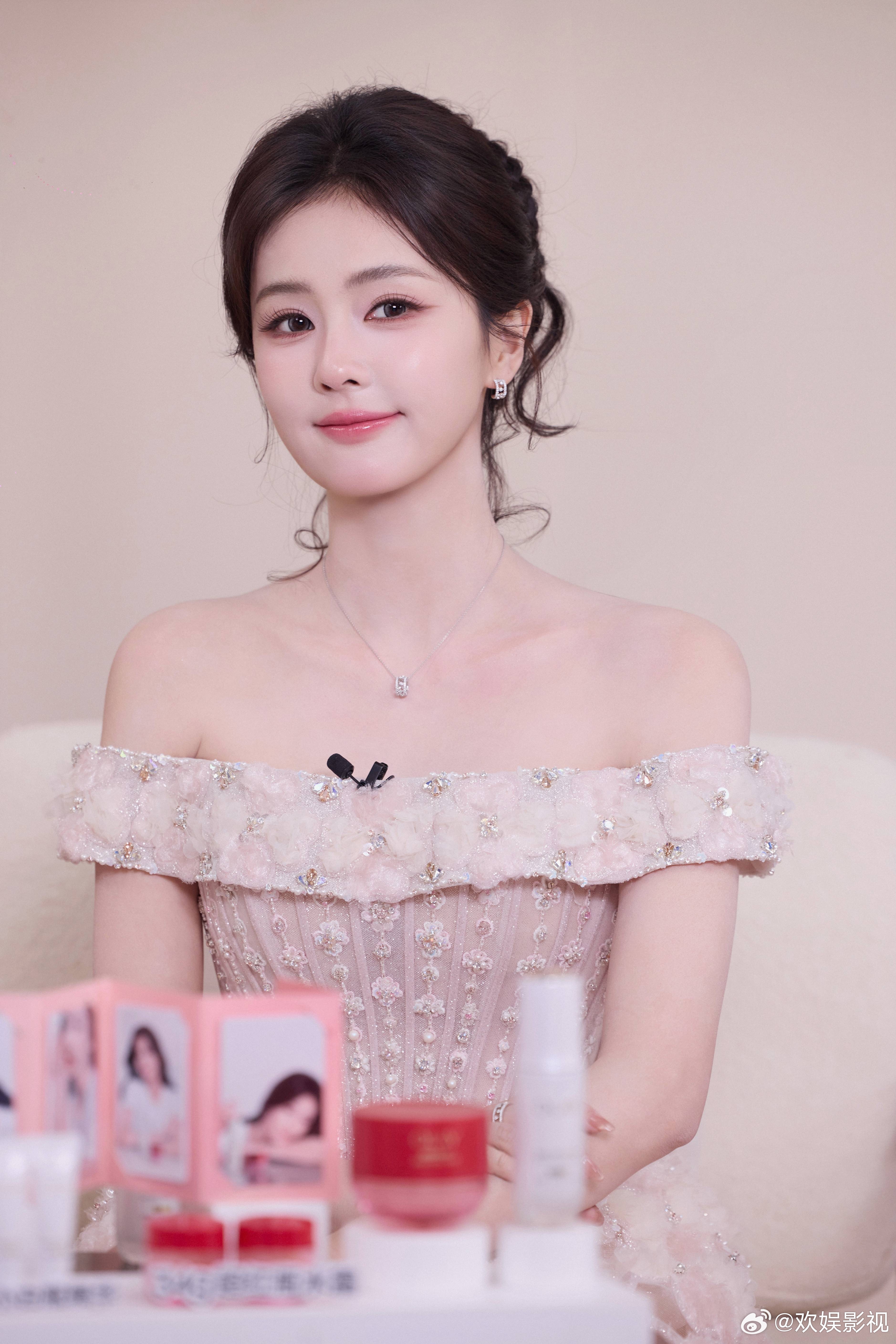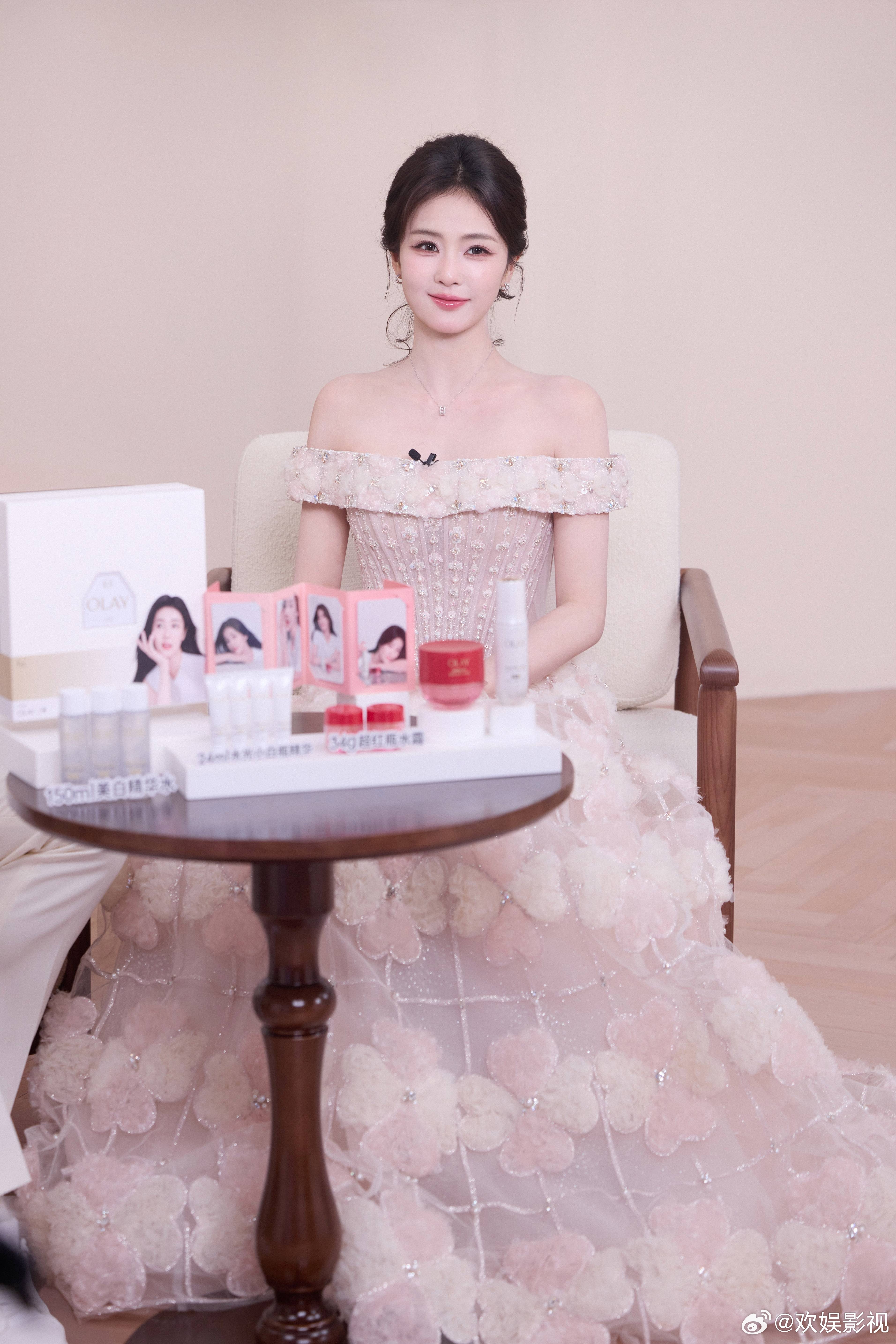 粉纱曳影,玉枝凝香。欢娱影视演员今日以OLAY大中华区品牌代言人 身份做客品牌直