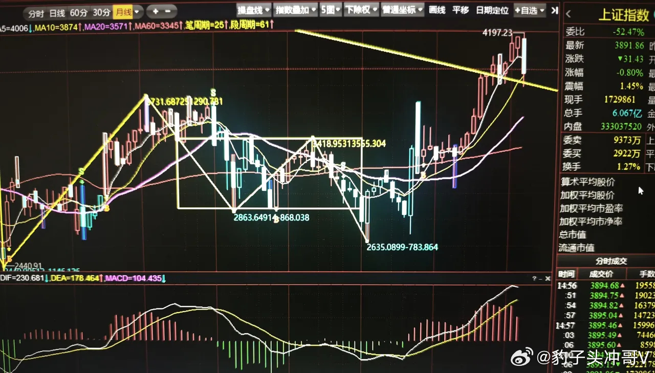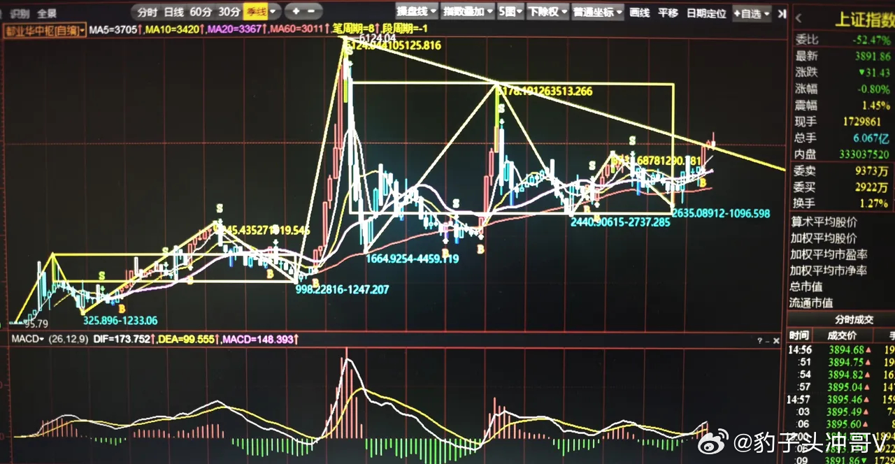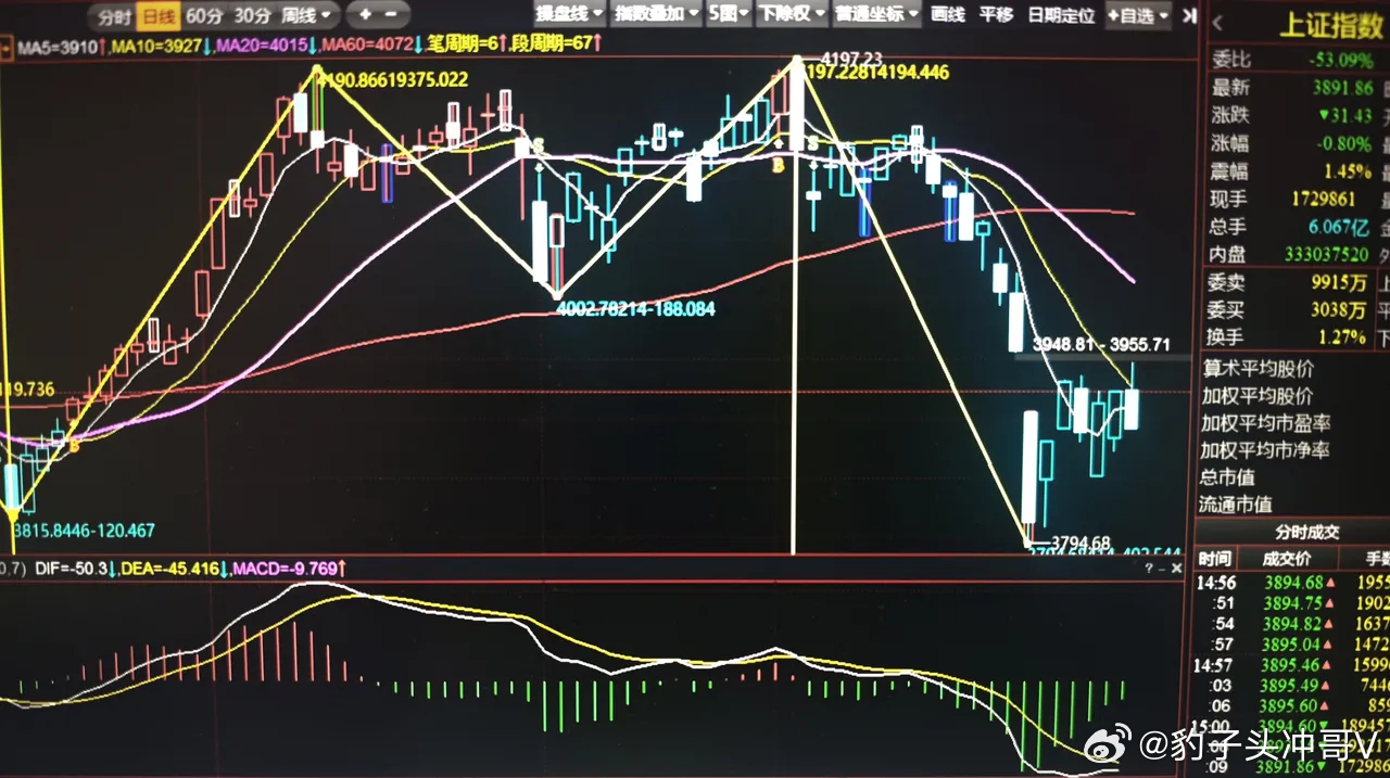 缠论季评:上证长牛根基未摇,科创50二中枢下跌待B点2026年一季度季线、月线收官战落下帷幕!用缠论全景拆解上证与科创50的多周期结构,结论先给大家吃颗定心丸:上证中长期上涨趋势未变,短期回踩是黄金加仓机会;科创50已进入二中枢下跌尾声,B点信号临近,抄底窗口正在打开!一、上证:季线回踩强支撑,多周期结构暗藏反攻密码1. 季线:二中枢上涨格局延续,3850支撑成牛熊分水岭本季度上证冲高回落,放量下跌1.94%,收盘3891点,最高触及4197点,最低下探3794点,精准回踩了6124点与5178点连线形成的长期下降趋势线——这条被市场奉为"牛熊分界线"的核心支撑,在2024年9月突破后已成功转化为强支撑位,本月精准落在3850点附近。从缠论大结构看,自95点启动的二中枢十一笔上涨走势仍在延续,2635点以来的第十一笔上涨远未结束,季度级别的回踩只是趋势中的健康休整,就像长跑中的换气环节,为后续突破4197点积蓄力量。2. 月线:一中枢上涨未破,3815成关键多空分界受中东冲突升级影响,本月上证放量大跌6.51%,跌破5月均线后回踩10月均线与长期下降趋势线,看似凶猛的下跌实则是对上涨趋势的深度检验。缠论结构显示,自2440点起的一中枢五笔上涨已构建完整,2635点开启的离开段虽有结束预期,但核心取决于周线级别多空分界点3815点的得失——只要该位置不被有效跌破,月线级别的上涨结构就不会被破坏,本次大跌更像是主力借地缘风险进行的月线级洗盘,成交量放大恰好说明低位承接资金活跃,空头抛压正在快速释放。3. 日线+30分钟:中枢震荡蓄势,3852成短期反攻跳板日线级别,自4197点起的一中枢下跌结构清晰,3794点启动的第二笔反弹尚未结束,但需警惕若反弹未能突破4197点,将在高位构建2S点,形成日线级别的调整信号。30分钟级别更具操作参考价值:自3794点起的一中枢上涨正在延伸,当前处于3948点以来的第四笔回调,多空分界点3852点至关重要——只要不有效跌破该位置,就将构建30分钟级别上涨中枢,后续离开段有望发起对3948点的冲击,若出现背驰则需警惕短期回调;若跌破3852点,将向下寻求3815点与3794点的双重支撑。4. 5分钟:中枢下跌待终结,明日关注结构完成信号5分钟级别走势更为细腻:自3852点起的一中枢上涨因离开段未过前高,在3927点形成2S点后转向下跌,目前处于3948点以来的一中枢下跌结构中。明日核心关注该中枢的构建进度与离开段力度,若出现下跌背驰或底分型信号,将标志5分钟级别调整结束,为日线反弹提供助力。二、科创50:月线顶分型确认,二中枢下跌尾声寻B点1. 月线:一中枢上涨终结,顶分型开启中期调整科创50本月走势惨烈,放量大跌15.57%,收盘1256点,一举跌破5月、10月均线,形成明确的确认顶分型结构——这种由三根K线构成的"山峰"形态,标志着多方动能彻底衰竭,空方开始主导市场。从缠论大结构看,自635点启动的一中枢上涨已正式终结,第一笔上涨完成后,月线级别进入中期调整阶段,后续需等待新的中枢构建与买点信号。2. 日线+30分钟:下跌趋势延续,1265成关键阻力日线级别,自1375点起的一中枢下跌持续发酵,1494点开启的第三笔下跌仍在延续,今日小幅放量下跌进一步确认了空头趋势。30分钟级别更显弱势:不仅跌破了多空分界点1265点,且反弹未能成笔,自1494点起已运行一中枢十一笔下跌,1326点以来的第十一笔下跌仍在推进,短期1265点从支撑转化为强阻力,未突破前难有像样反弹。3. 5分钟:二中枢下跌近尾声,B点信号引颈期盼最值得关注的是5分钟级别结构:自1326点起已构建完成二中枢下跌,按照"走势终完美"的缠论核心逻辑,二中枢下跌后必然迎来趋势终结。明日将是关键观察窗口,若出现下跌背驰配合底分型,将形成5分钟级别的B点(第二类买点),这将是短期最具性价比的抄底机会;即使未能即时出现B点,二中枢下跌后的反弹也值得期待,反弹第一目标看1265点阻力位。操作策略1. 上证方向:坚定持有核心标的,3852-3872点区间可分批加仓,重点关注硬科技、扩大内需等政策受益赛道,反弹第一目标3955点,突破后剑指4197点;若跌破3815点则适当减仓,等待周线级别买点确认。2. 科创50方向:耐心等待5分钟B点信号,未出现明确买点前切勿盲目抄底;若出现B点可小仓位试错,反弹关注1265点阻力突破情况,核心跟踪半导体、算力等主线标的的超跌反弹机会。3. 仓位管理:当前整体仓位保持6-7成,利用小级别买点优化成本,避开无业绩支撑的杂毛标的,聚焦有政策+业绩双重支撑的核心资产。风险提示本文仅为个人缠论分析观点,不构成任何投资建议。股市有风险,投资需谨慎,操作决策请结合自身风险承受能力、个股基本面及实时盘面综合判断。大级别趋势未改但短期波动剧烈,唯有坚守缠论结构、把握级别递归逻辑,才能在震荡行情中把握确定性机会!